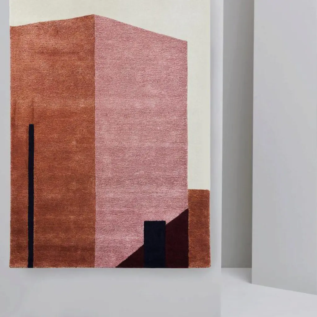 Arqui wool and viscose large rug 1 in indian red and peachThese limited edition, architecturally inspired, thick weaved rugs, are ideal for a snug childhood space or a teen’s private room. They can even grace the walls of a living room or foyer, boardroom or bar. The heavy texture helps to transform the acoustic signature of any environment, whether they’re hung on a wall or spread on a floor. All the pieces in this collection are hand-woven in India by master artisans who have perfected their skills through generations.Additional Information:Material: Wool and viscoseFabric colours: Indian Red & PeachDimensions: L 300 x W 200 cmAvailable in other size options: SmallAvailable in other fabric colour options: Cedar Green & Fig Purple