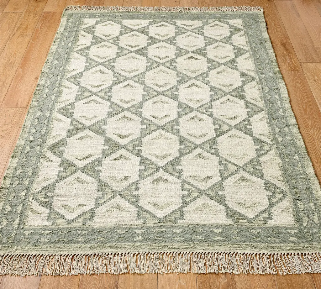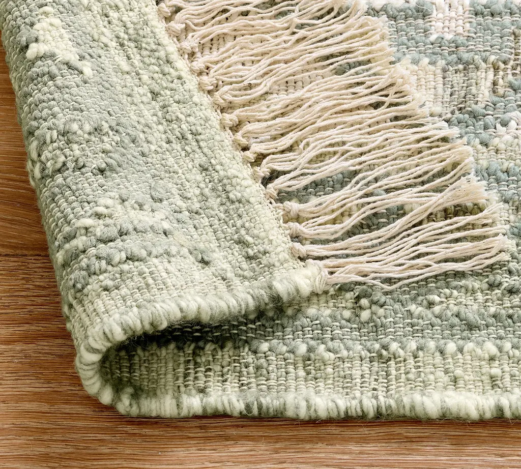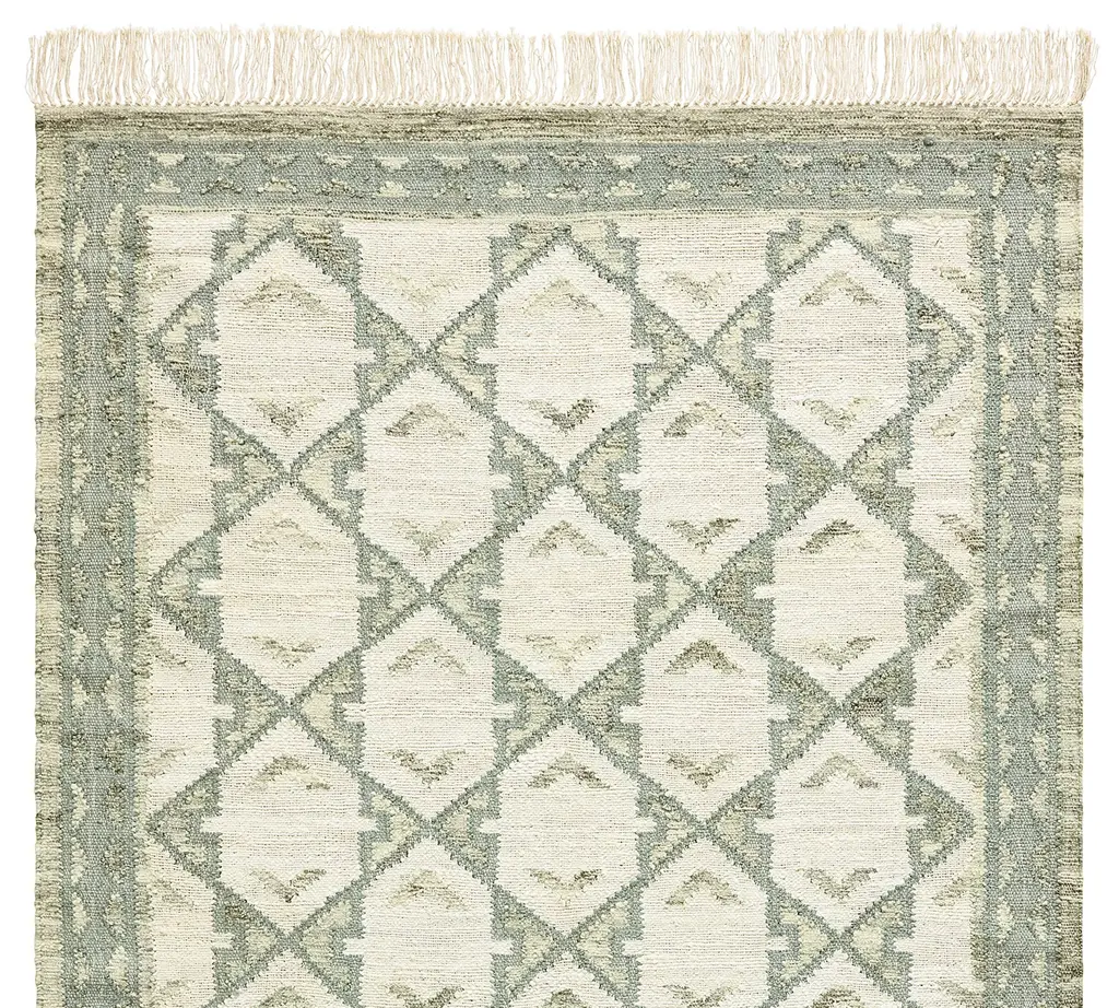 The easy-to-incorporate palette and pattern of Arroyo make any room feel thoughtfully complete. Blended yarns are woven by hand for enduring beauty and a heathered tonal effect. The fringed border adds a finishing touch of texture.