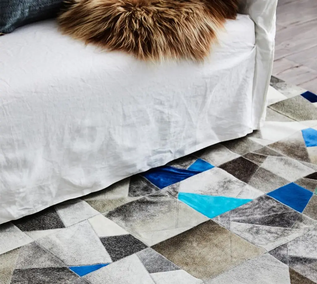 The luxurious Faceta is a sumptuous, elevated statement piece. With its fragmented proportions and tonal, unexpected, irregular shapes, this is covetable style defined.The Faceta is created from premium quality cowhide leather, sourced as a by-product. It is cut to precise angles and then pieced together using commercial grade nylon thread. It has a ribbon edge finish.This item can easily be customized to any color size or shape upon request.Art Hide rugs are usually made to order. Please allow 4-5 weeks for delivery.