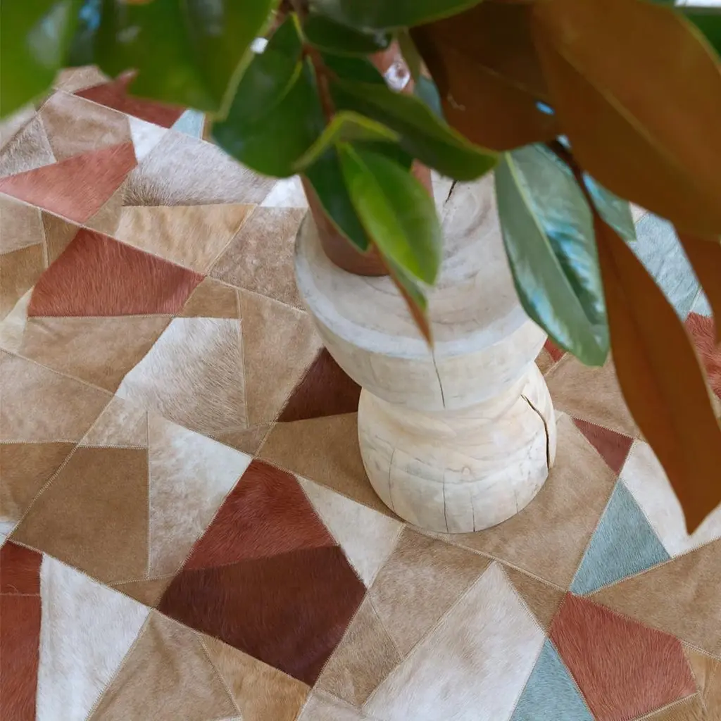 The luxurious Faceta is a sumptuous, elevated statement rug. With its fragmented proportions and tonal, unexpected, irregular shapes, this is covetable style defined.This stunning new colorway features updated colors inspired by the Southern Californian desert.The Faceta is created from premium quality cowhide leather, sourced as a by-product. It is cut to precise angles and then pieced together using commercial grade nylon thread. It has a ribbon edge finish.Art Hide cowhide rugs are stitched together using commercial grade nylon thread and feature a branded ribbon edge finish. They are built to last a lifetime.This rug can easily be customized to any color, size or shape. Art Hide rugs are usually made to order. Please allow approximately 4 weeks for delivery.