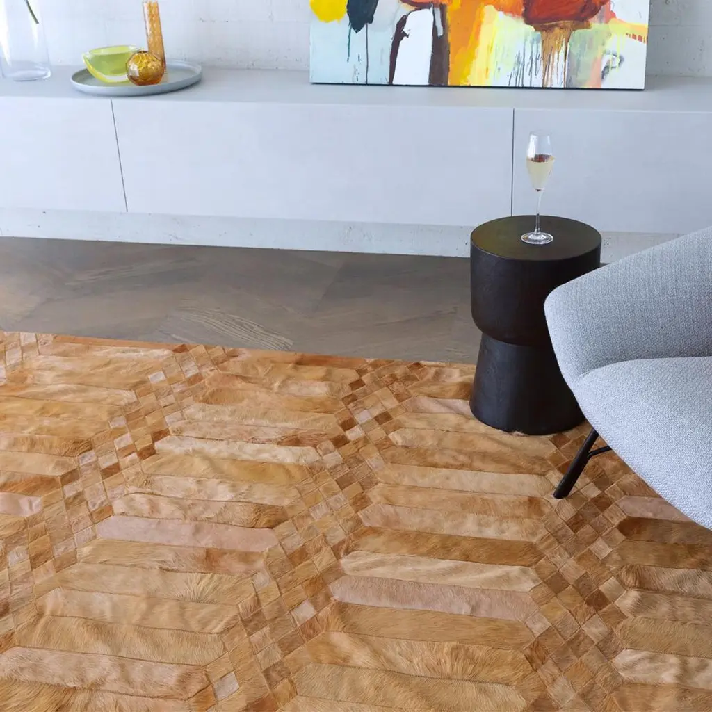 Art Deco Inspired Customizable Largo Cognac Cowhide Area Floor Rug Small