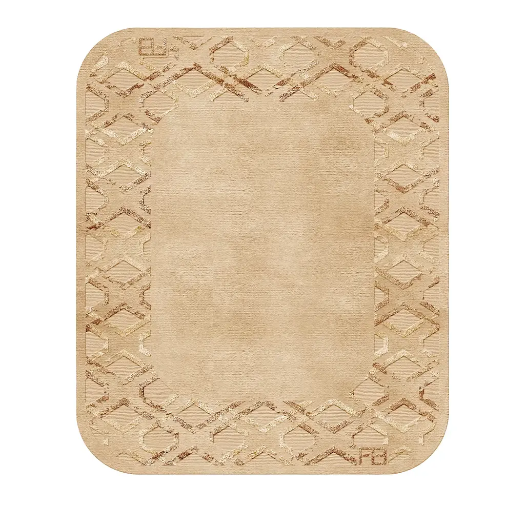 Inspired by 1930s Art Deco, the stunning rug features soft tones of ivory, cream, and light taupe for an elegant color interplay. Hand-tufted by master weavers in India using a luxurious blend of New Zealand wool and viscose, its intricate geometric pattern adds depth while maintaining a serene balance. The cotton backing, adorned with the Franco Bianchini logo, completes the refined design, making it perfect for both classic and contemporary interiors.