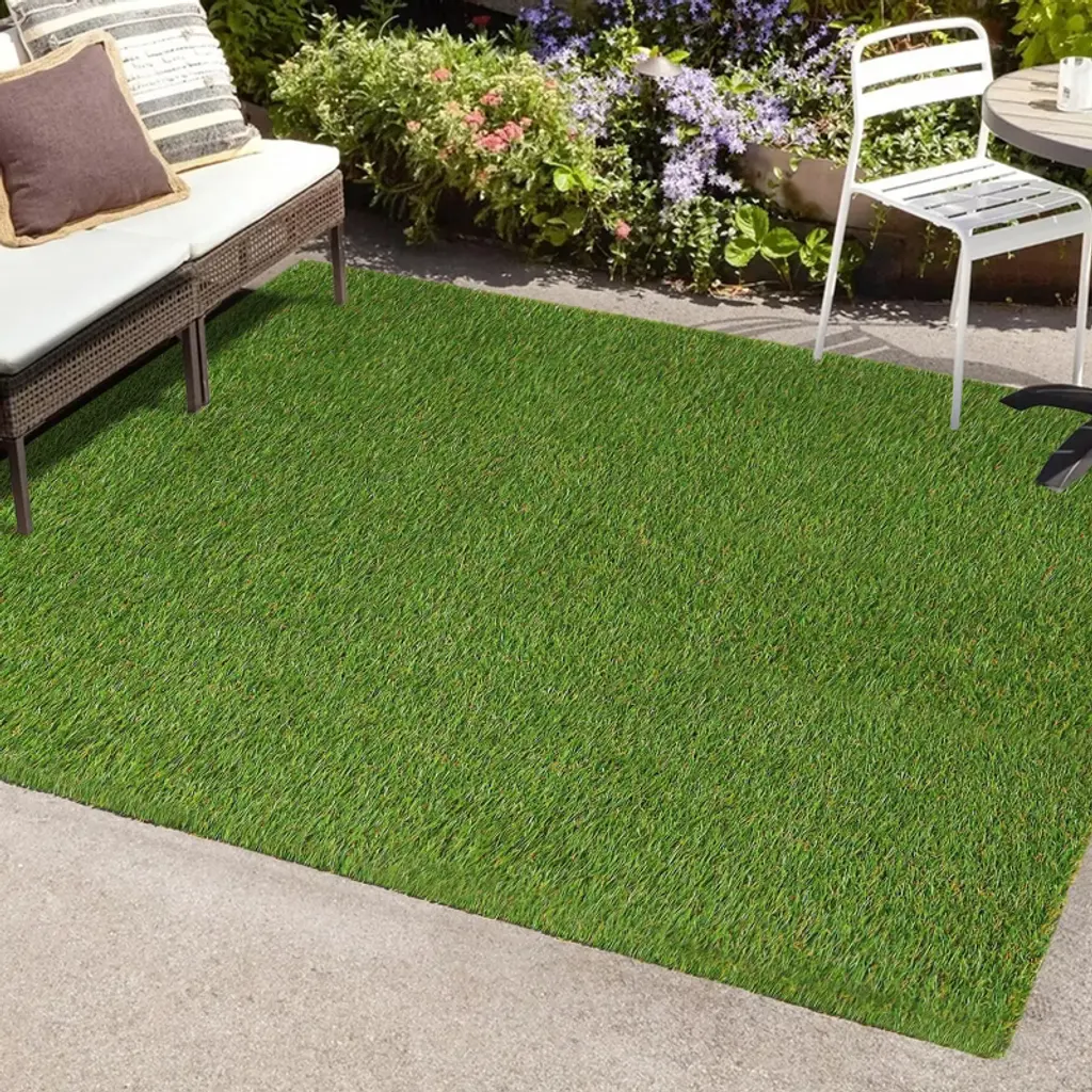 Create a natural, grass-like look in your favorite indoor or outdoor space with the Artificial Grass Synthetic Lawn Indoor/ Outdoor Area Rug by Blue Nile Mills. Crafted from a highly durable polypropylene material, this artificial grass area rug can withstand outdoor weather and high foot traffic. Featuring holes in the backing, this piece is expertly crafted to drain excess water or potty training mess from pets. This rug is ideal for pet training or simply to add a delightful touch of nature to your home