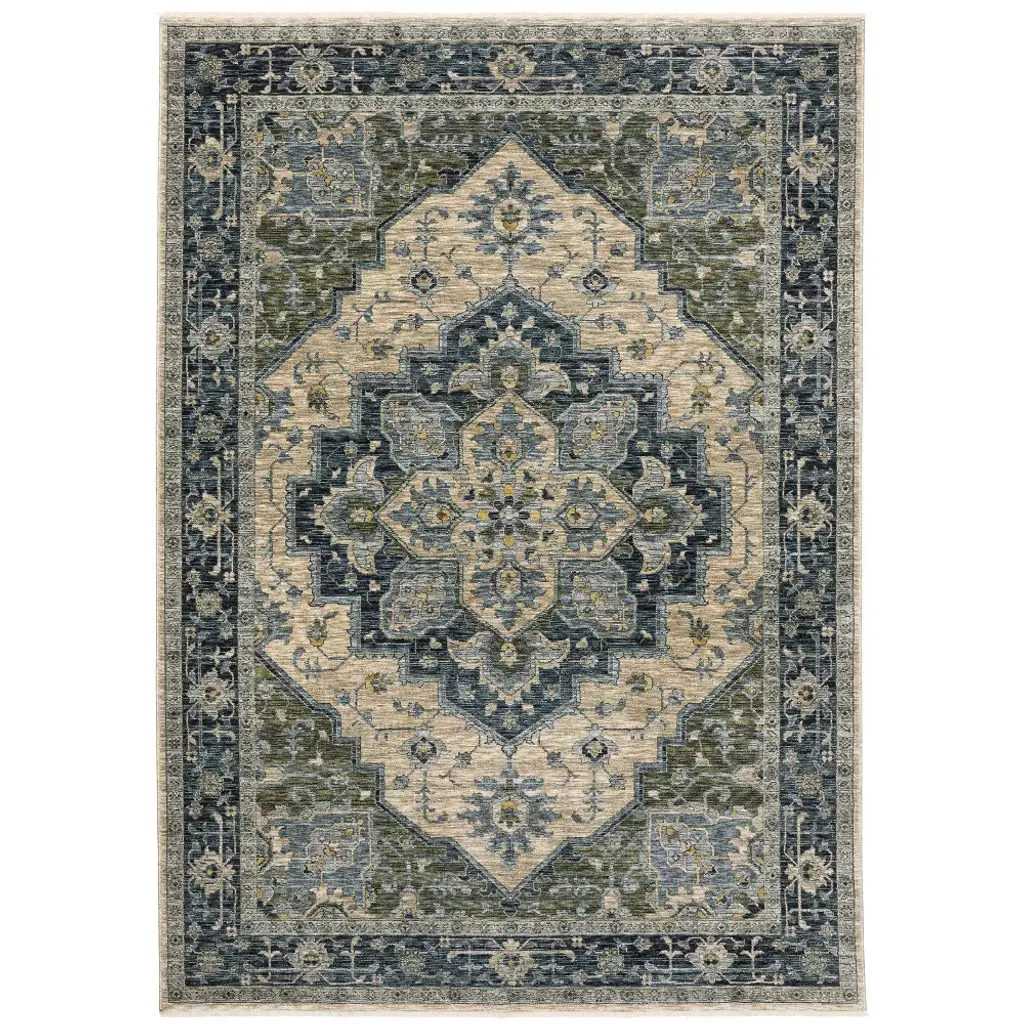 Arya Center Medallion Indoor Area Rug Blue/Tan - Captiv8e Designs