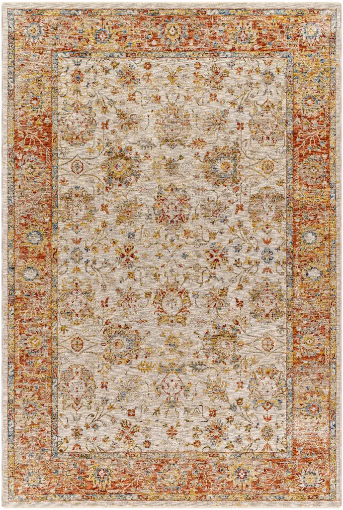Collection: Asabi Colors: Light Sage, Tan, Mustard, Olive, Sage, Brick Red, Navy , Burgundy Construction: Machine Woven Material: 100% Polyester Pile: Medium Pile Pile Height: 0.31" Styles: Traditional Made In: Turkey Thickness: 0.35" Fringe Length: 0.43" Price Range: $$$$$ (Affordable)