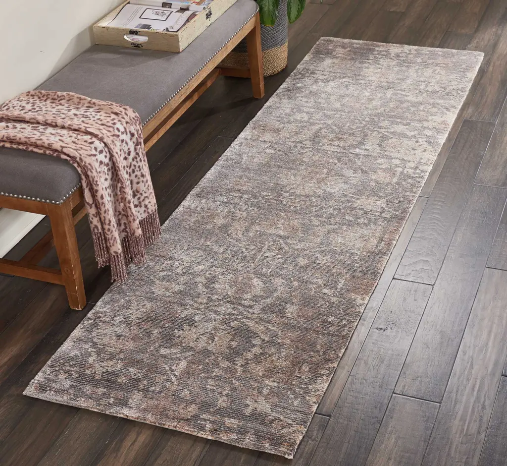 Introducing the Ash Essentials Brown Modern Cotton Blend Rug is like introducing a work of art to your living space. It's not just a rug; it's a statement. Measuring 2'3" by 8', this contemporary runner does more than cover your floor—it transforms it. With a color palette that shifts from deep brown to muted grey and warm beige, this rug echoes the charm of a well-worn novel, inviting and storied. Crafted meticulously in India, the interplay of materials is where the magic happens. The cotton foundation offers a comforting robustness underfoot, a testament to everyday resilience. But it's the silk-like yarns that elevate the piece, adding an understated elegance. These fibers create a gentle sheen, catching the light in a way that emphasizes the rug’s abstract pattern. An evolved damask, if you will—less ornate, more an homage to simplicity and sophistication. There's a dynamic visual story here. The abrash coloring technique lends an organically distressed look, each piece unique, whispering of age and history. Subtle tonal shifts suggest an aged, lived-in authenticity that complements interiors from modern to classic. The varying pile heights contribute texture, another narrative layer. Think of the spaces where this rug becomes indispensable—busy hallways that breathe life into movement, entryways that embrace guests with warmth, the bedside that cradles your first morning step. Here, utility meets style. Its neutral tones provide versatility, making it a natural collaborator in a diversity of styles: minimalist, industrial, bohemian, and beyond. This Rug isn't just about covering space; it enhances it, offering comfort and a touch of elegance that subtly commands attention. It weaves a silent narrative, leaving a lasting imprint without uttering a single word.