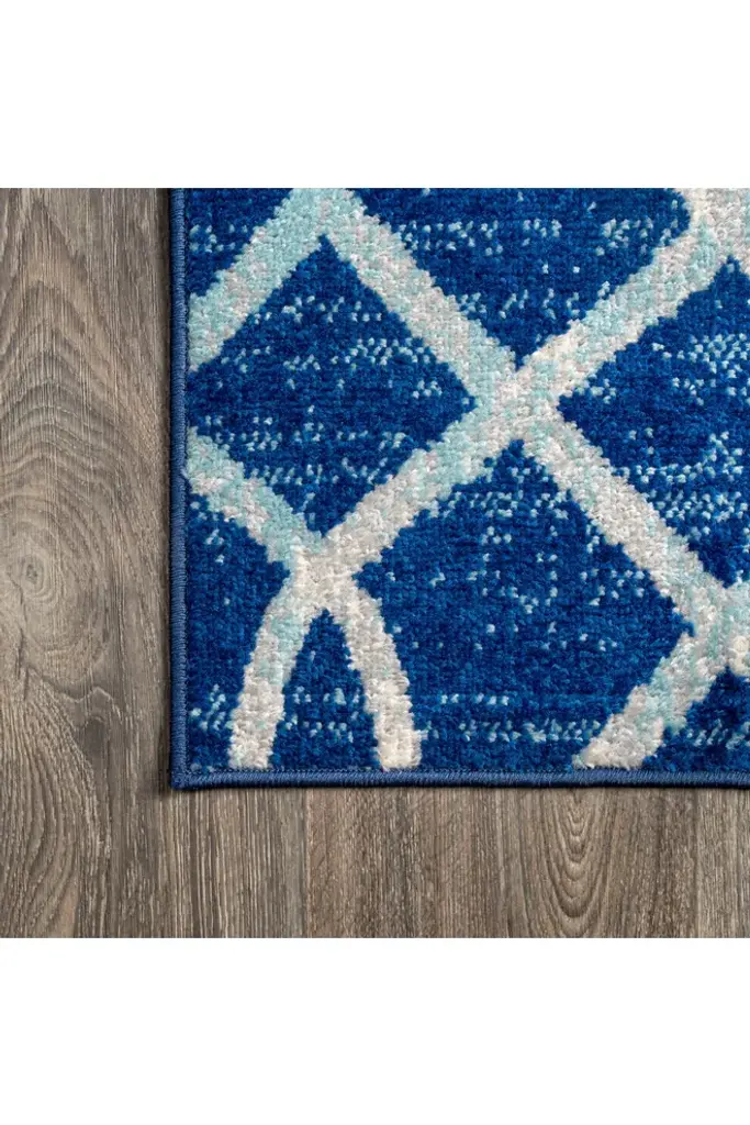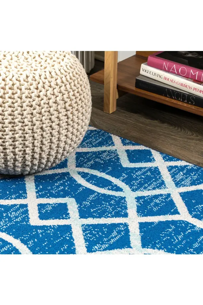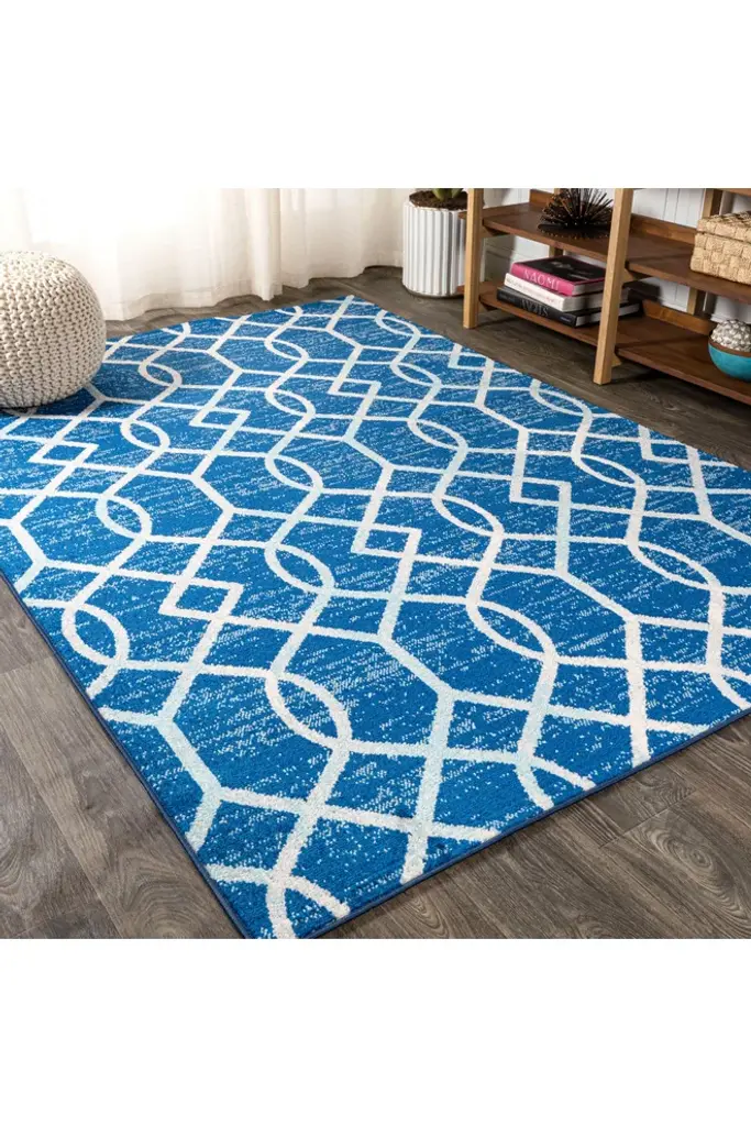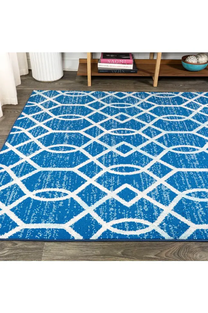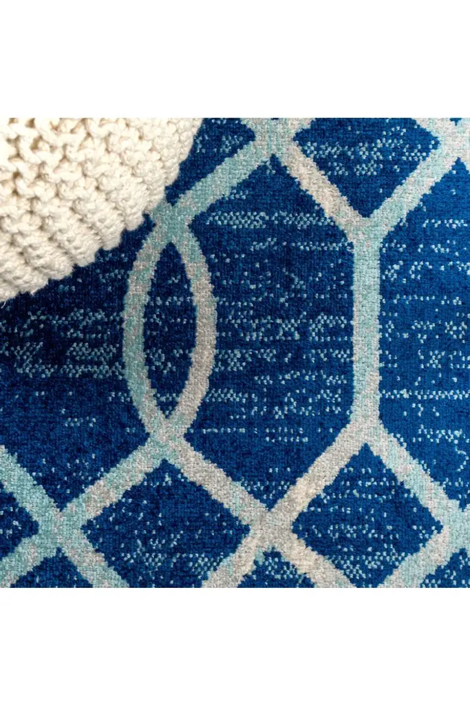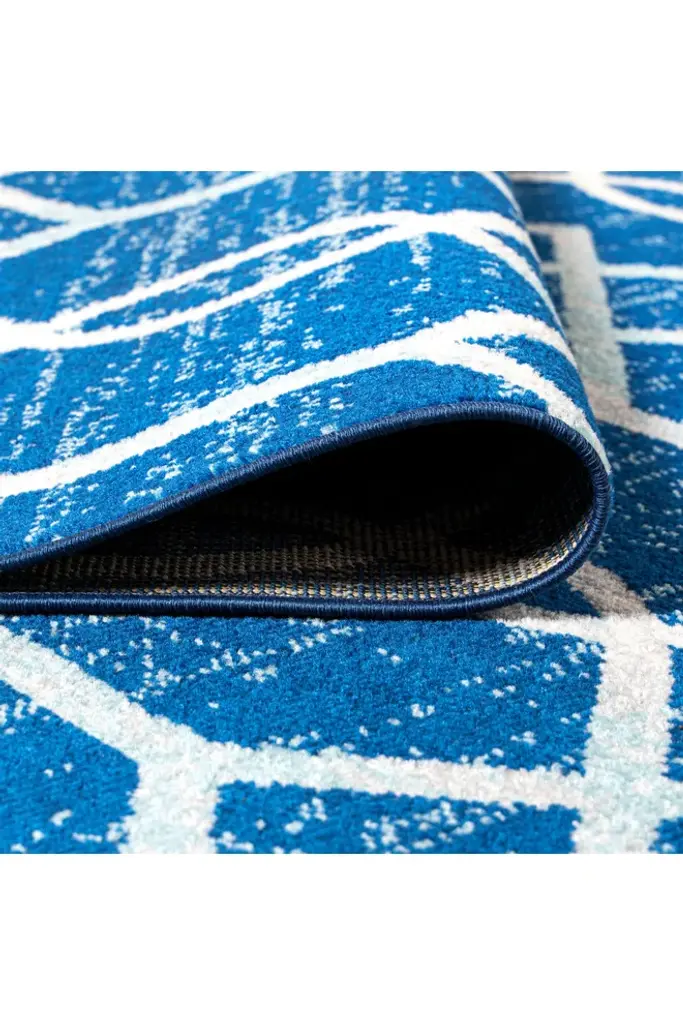 Our geometric trellis design is inspired by blue and white Moroccan tile patterns - the perfect complement to traditional, modern and coastal interiors. The ogee trellis in ivory is backed with mingled tones of blue to give this rug a vintage look. This family-friendly rug is ideal for the living room, kitchen, dining room, bedroom or entry.Features:Power loomed from durable synthetic fibers, with a short .31" pileDark and medium shades of blue are mingled together in the background, with a trellis design woven in ivoryMade from easy-care polypropylene; sweep or vacuum to clean100% PolypropyleneNo backing, use of rug pad is recommended (sold separately)Power Loomed in TurkeyActual Dimension: 4 ft. x 6 ft.Color: Blue/GrayThickness measures: 0.31 in.Available in multiple sizes and/or colorsRug Care:Vacuum regularly and spot clean as needed; avoid direct and continuous exposure to sunlight; use brushless vacuum; remove spills immediately; if liquid, blot with clean, undyed cloth by pressing firmly around the spill to absorb as much as possible; for hard to remove stains, professional rug cleaning is recommended; store in a dry, well ventilated area and rotate for consistent wearPacking and shipping may cause temporary creases in rugs, which will flatten out after a week on the floor; to expedite the process, try back-rolling your rug before laying it down, and then allow ample time for the remaining creases to relaxPlease Note: Due to differences in monitors, some rug colors may vary slightly. Lengths and widths may vary from the published dimensions. Patterns may vary slightly according to shape and size selected.About us:Style your floors with JONATHAN Y. By combining fine craftsmanship and design, this New York creative studio is bringing fashion to your floors. The collection mixes sustainable organic materials, vibrant colors and trend worthy styles to create JONATHAN Y's distinctive catalog of rugs.
