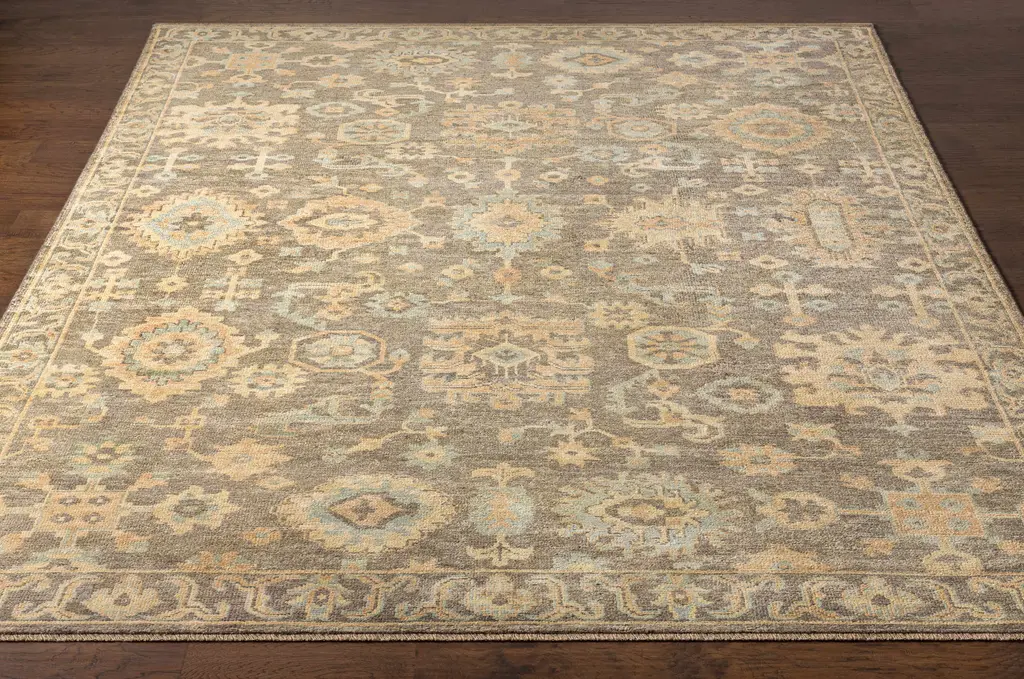 Collection: Asotin Colors: Burnt Orange, Mustard, Charcoal, Olive, Sage Construction: Hand Knotted Material: 70% NZ Wool,30% Viscose Pile: Low Pile Pile Height: 0.15" Styles: Traditional Made In: India Thickness: 0.25" Fringe Length: 0.5" Price Range: $$$$$ (Premium)