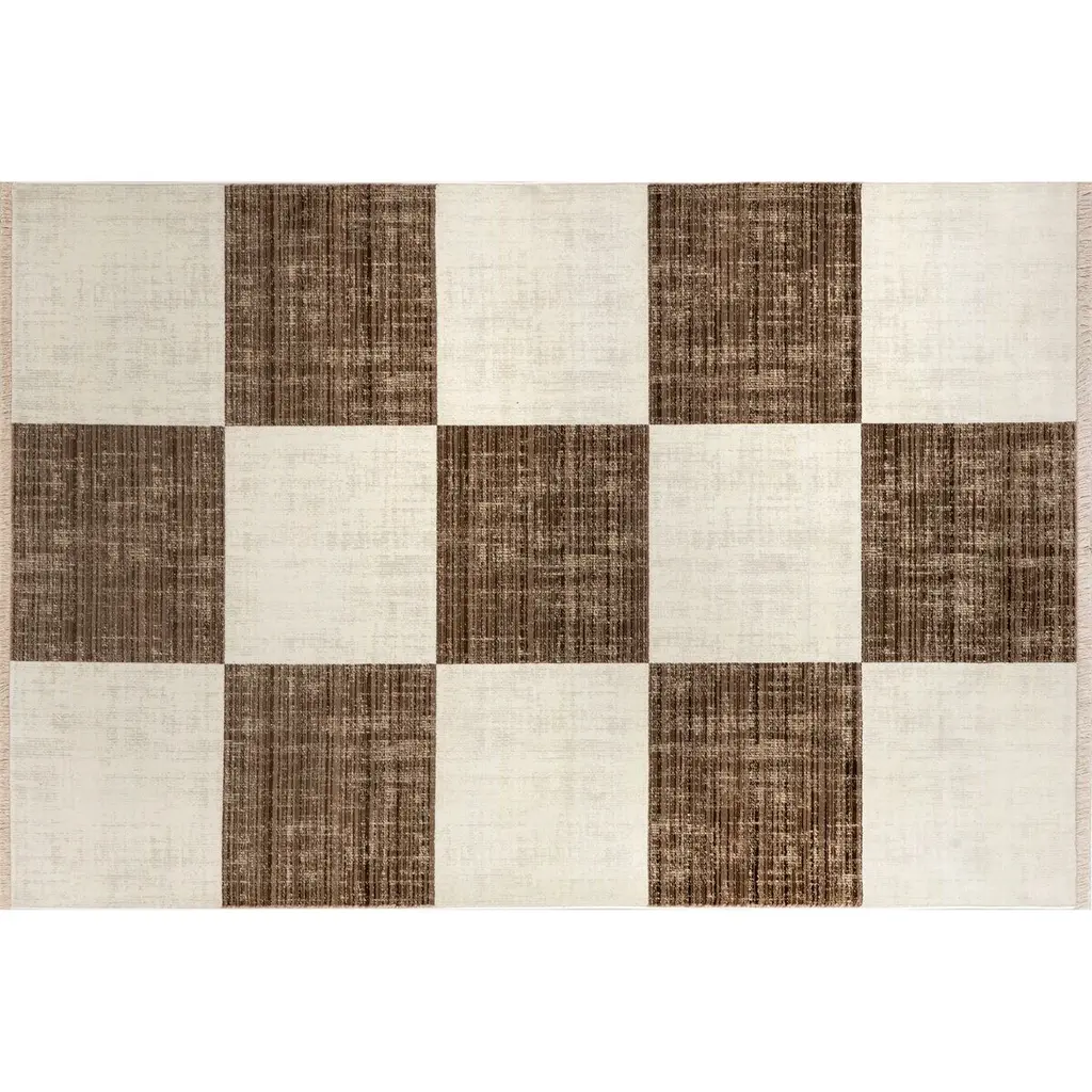 Aspen Checkerboard Fringed Rug | Brown - 5' X 7' 10"