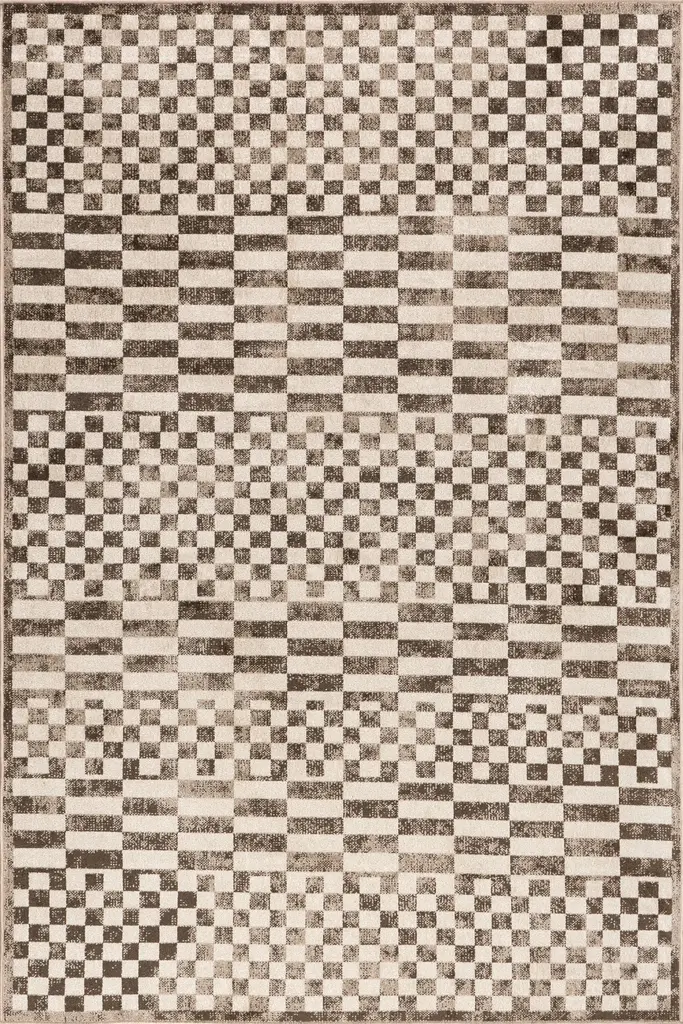 Aspen Checkerboard Fringed Rug | Brown - 6' 7" X 10' 2"