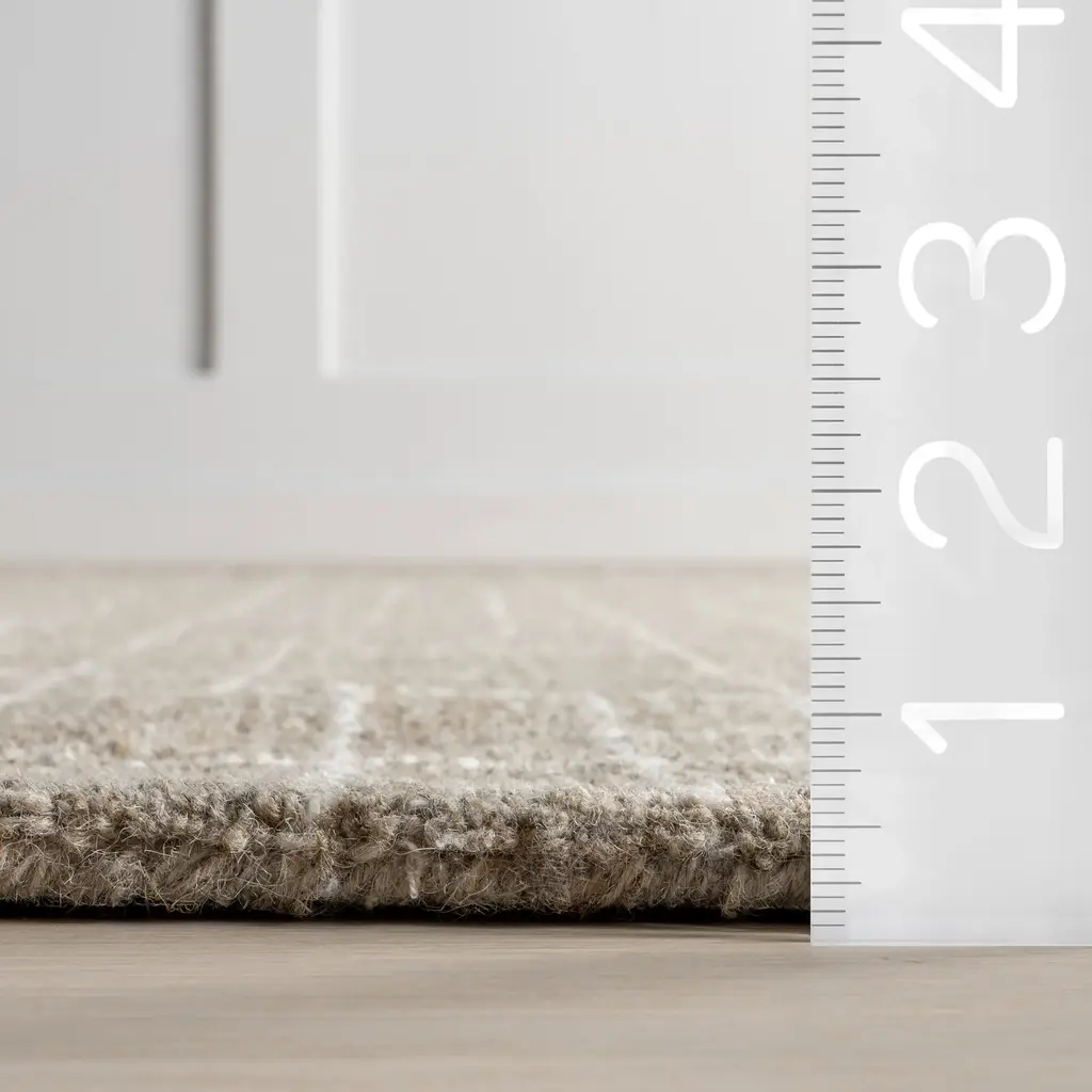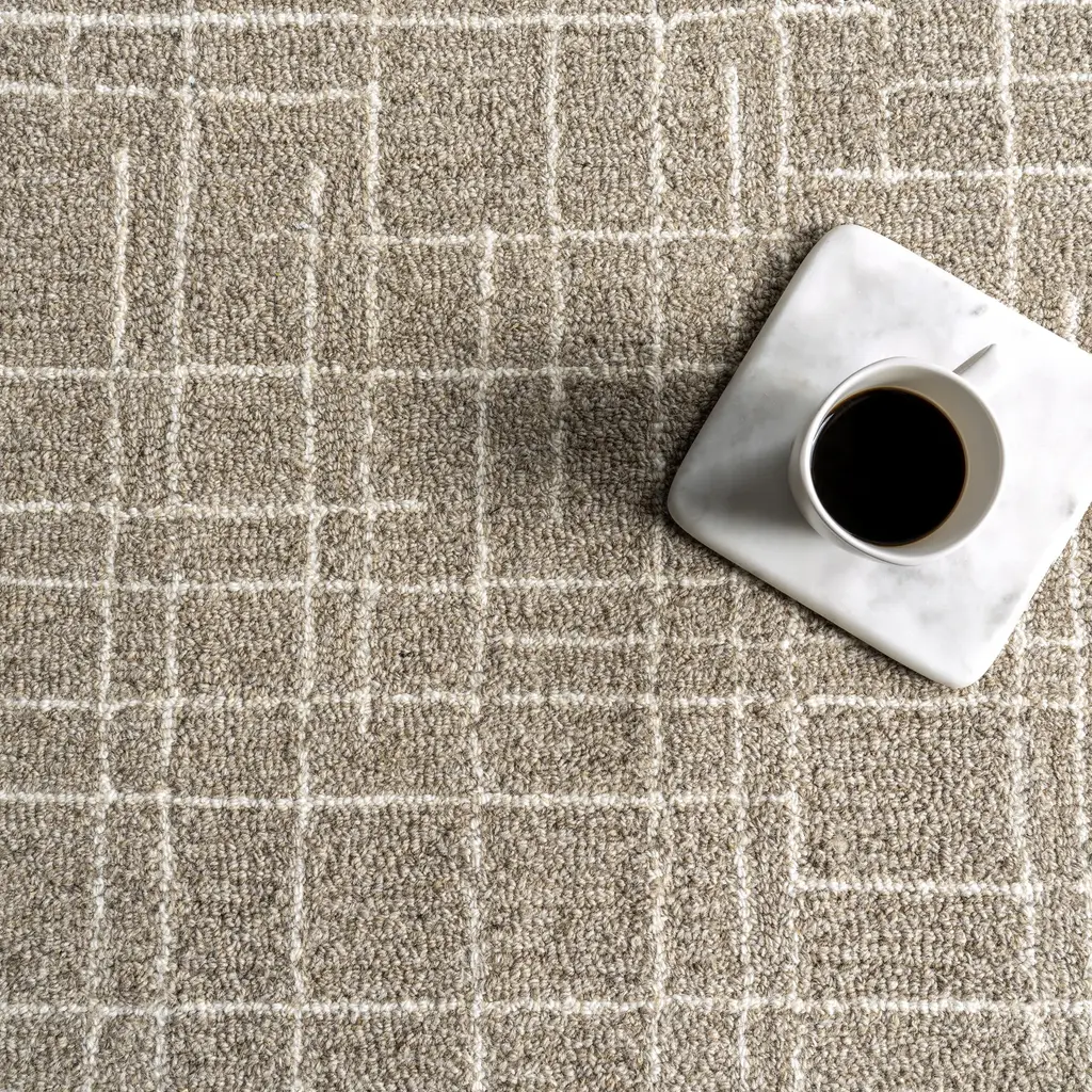 Elevate your home's charm with this luxurious indoor area rug, meticulously crafted from the finest wool to bring an unparalleled level of comfort and sophistication to your living space. Sink your feet into its soft, plush fibers, designed to provide a cozy oasis in any room of your home. Embrace the timeless elegance of our rug's clean, geometric pattern, adding a touch of modern flair to your decor. Its neutral hues blend seamlessly with any interior style, making it a truly versatile home accent that effortlessly complements your existing furniture and color scheme. Whether placed in the center of your living room, under your dining table, or beside your bed, this exquisite wool rug promises to elevate the ambiance of any space with its understated charm and superior quality. Transform your home into a sanctuary of style and comfort with our indulgent indoor area rug.