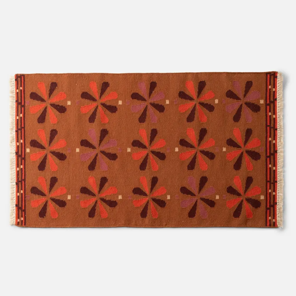Brighten the whole room — and add a pop of pattern underfoot — with the Aster Flatweave Wool Rug. Inspired by American floral motifs, it has tonal hues that add lively play to any space. Hand-carded wool gives it a durable and uniform feel, while a fringe edge balances out the look.