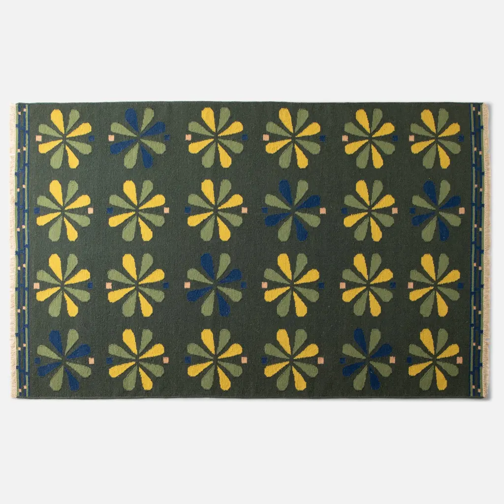 Brighten the whole room — and add a pop of pattern underfoot — with the Aster Flatweave Wool Rug. Inspired by American floral motifs, it has tonal hues that add lively play to any space. Hand-carded wool gives it a durable and uniform feel, while a fringe edge balances out the look.