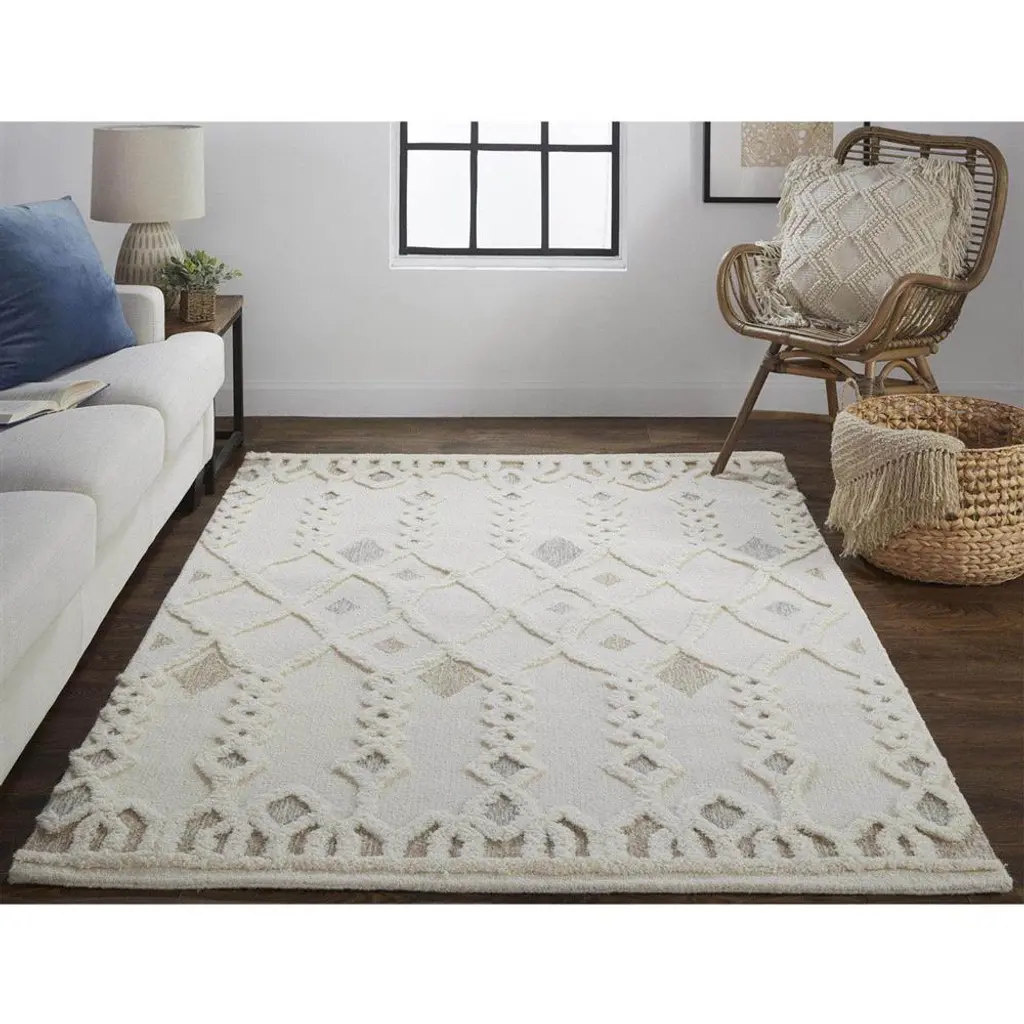 Atarah Modern Classic Cream Wool Geometric Patterned Rug - 4'x6'