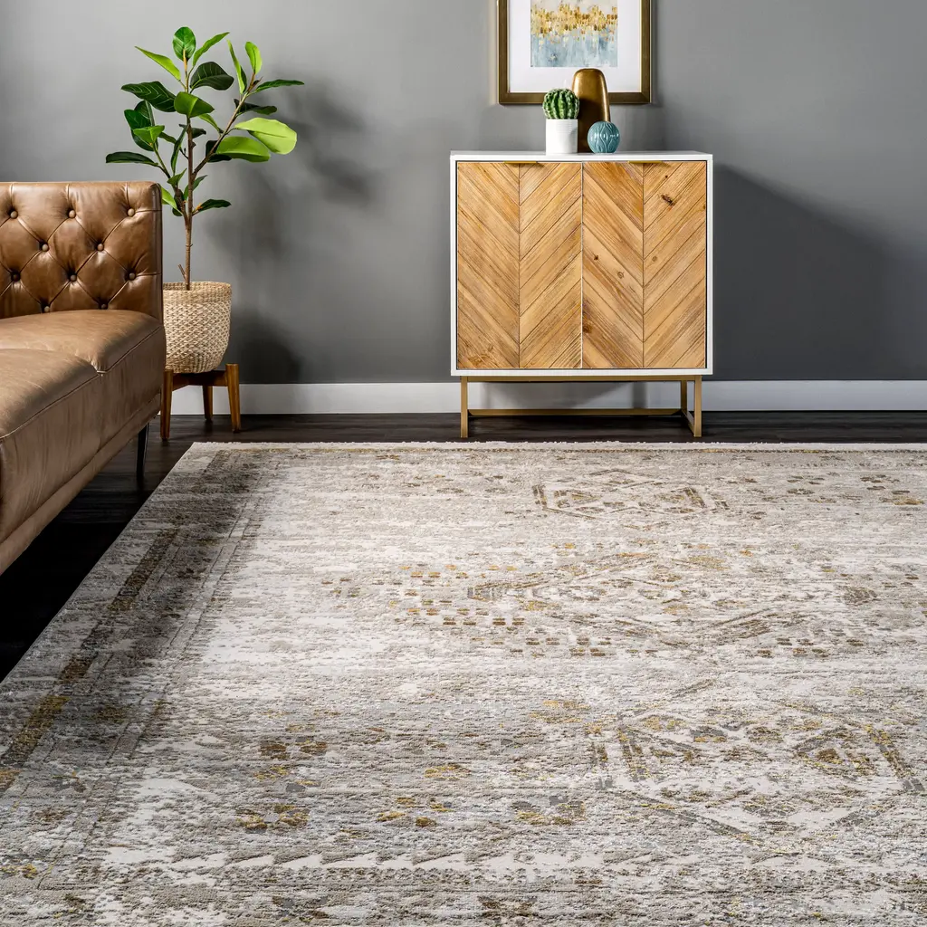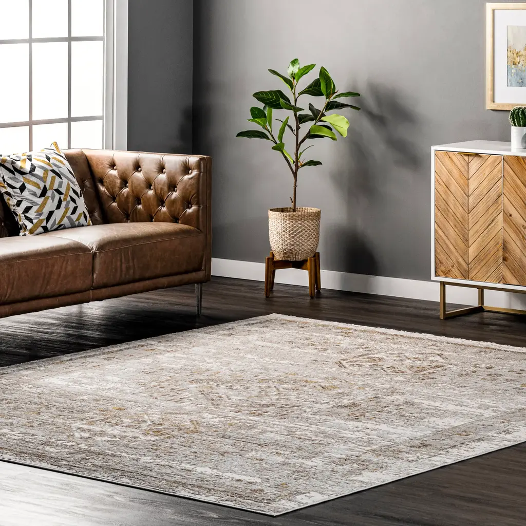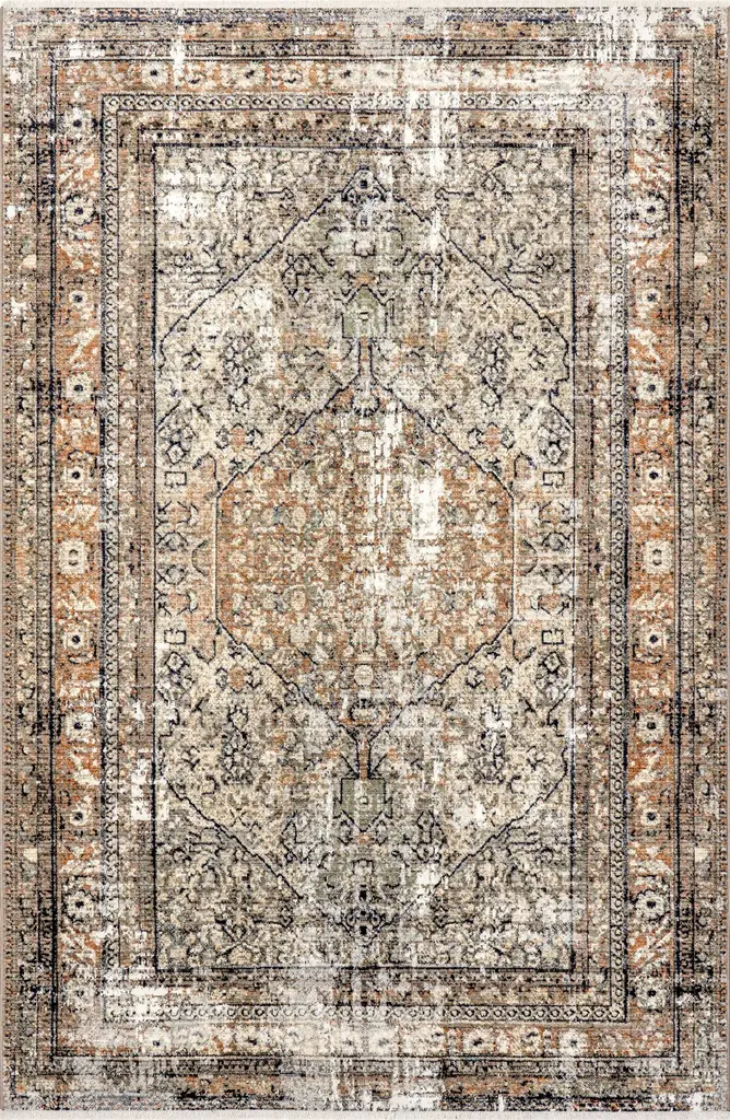 With a nod to traditional Persian rug design elements, this rug boasts a striking medallion motif that anchors any room. The distressed details are a delightful finishing touch that's sure to wow both you and your guests. Its powerloomed construction stands up to high foot traffic in entryways, hallways, and family rooms. This cozy area rug lends a low-maintenance appeal to any surroundings. Comes in a wide selection of sizes. Elevate your living space with our pet-friendly and easy to clean rugs.