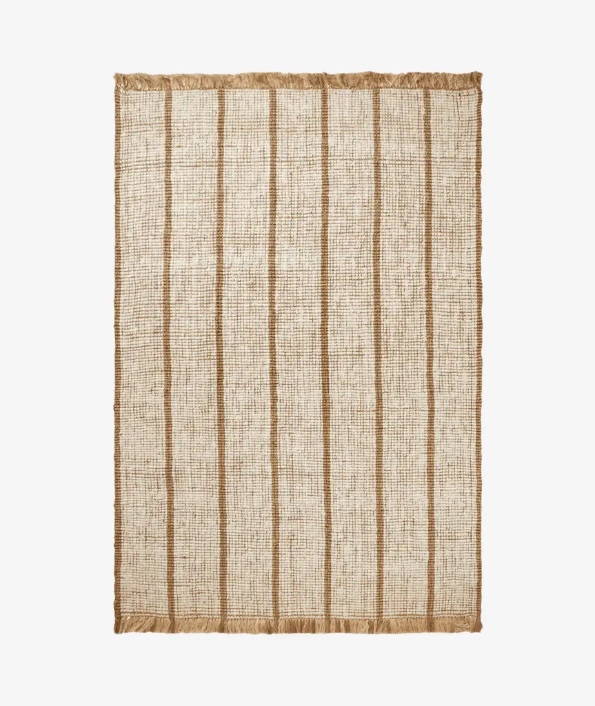 The Athens Stripes Rug draws its inspiration from the plush carpets adorning Mediterranean stone houses. Meticulously handwoven from pure jute, it showcases a richly textured design that infuses any space with warmth and natural elegance. Featuring bold yet subtly softened stripes and soft, full fringes, this rug effortlessly blends rustic charm with timeless sophistication.