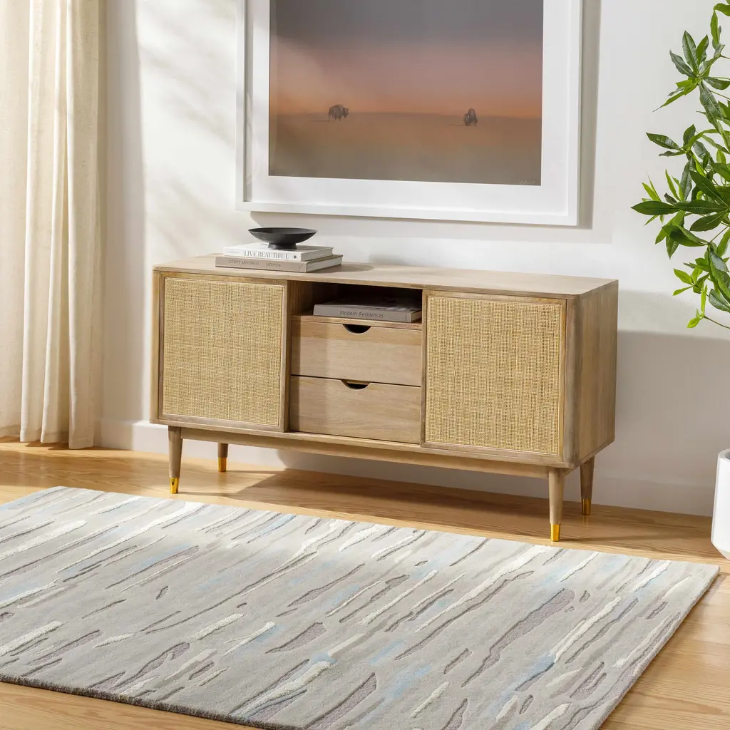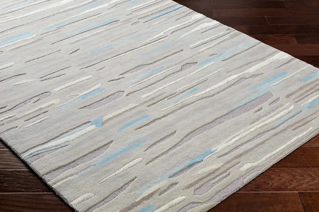 Collection: Atius Colors: Light Gray, Royal Denim, Gray, Medium Gray, Dark Brown Construction: Hand Tufted Material: 70% Wool,30% Viscose Pile: Medium Pile Pile Height: 0.24" Styles: Contemporary Backing: Canvas Made In: India Thickness: 0.43" Price Range: $$$$$ (Affordable)
