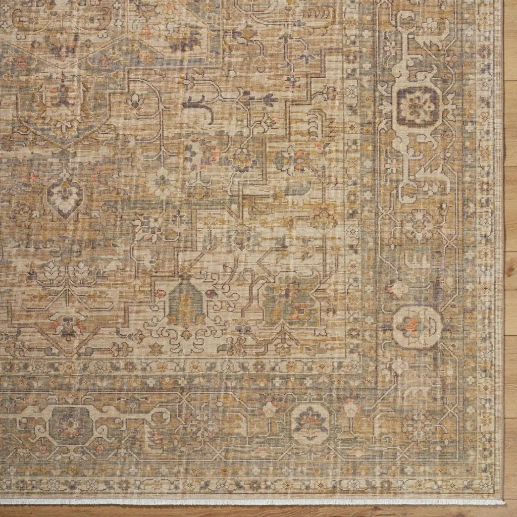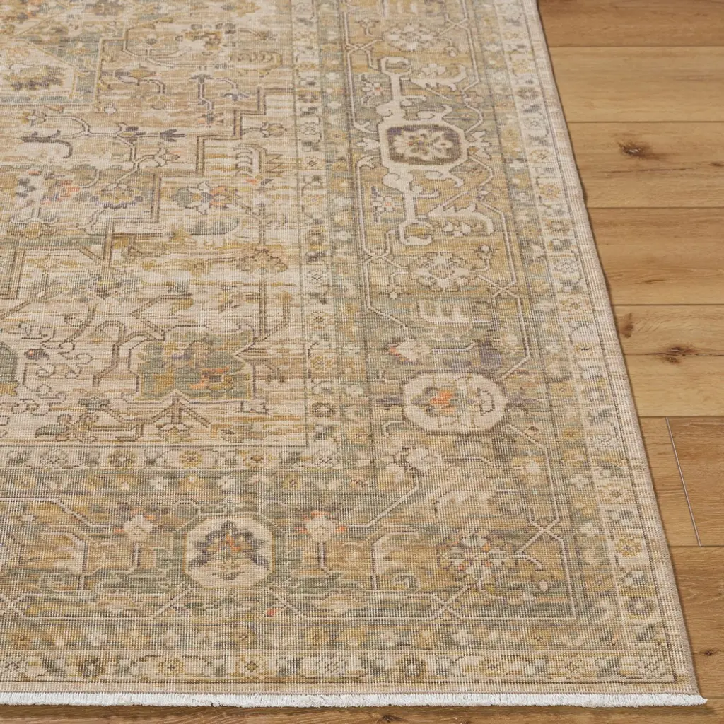 Atlee Updated Traditional Beige Wool Oushak Patterned Rug - 6'5"x8'10"