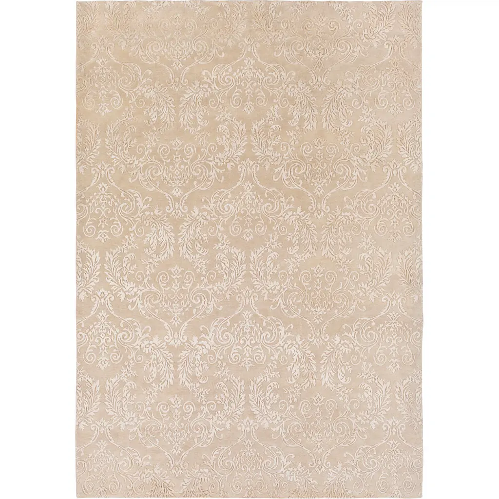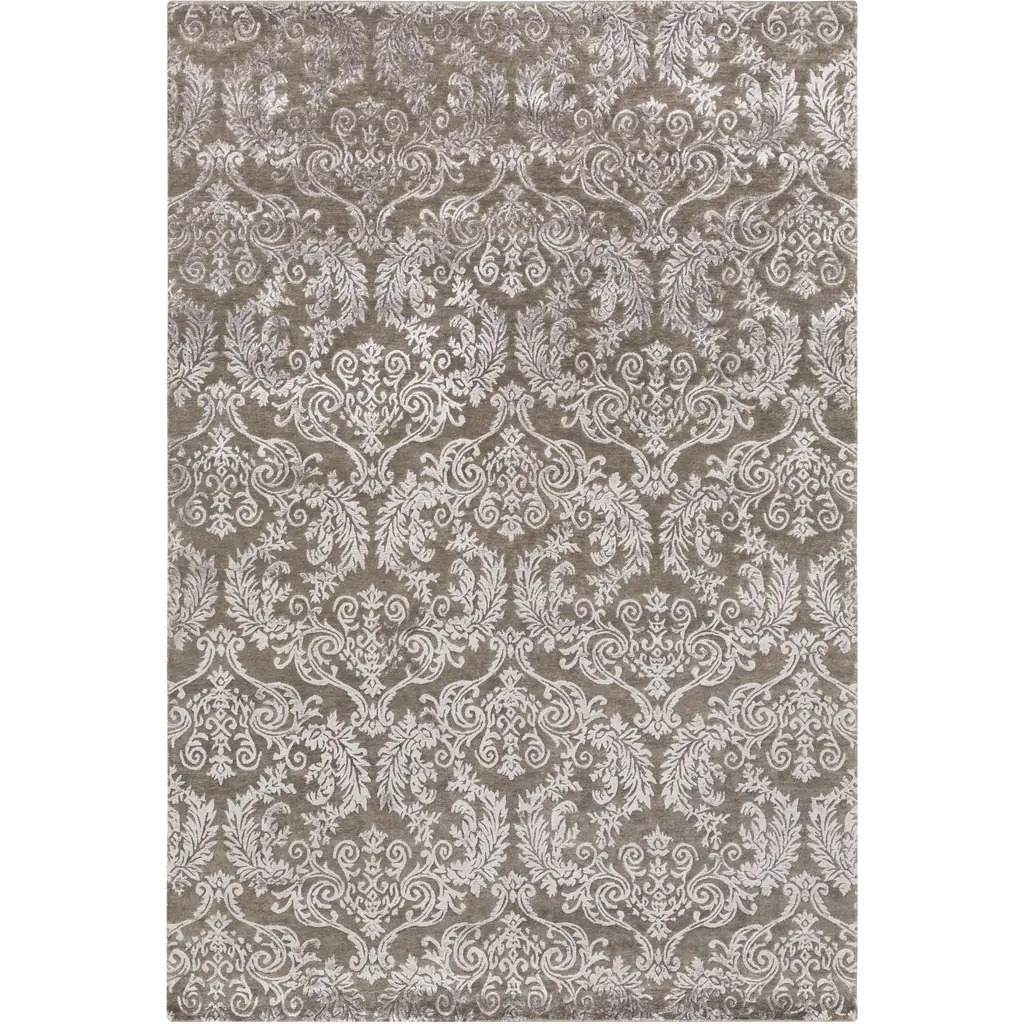 Collection: Aubrey Colors: Taupe Construction: Hand Knotted Material: 60% Wool,40% Viscose Pile: Medium Pile Pile Height: 0.25" Styles: Transitional Made In: India Thickness: 0.38" Price Range: $$$$$ (Premium)