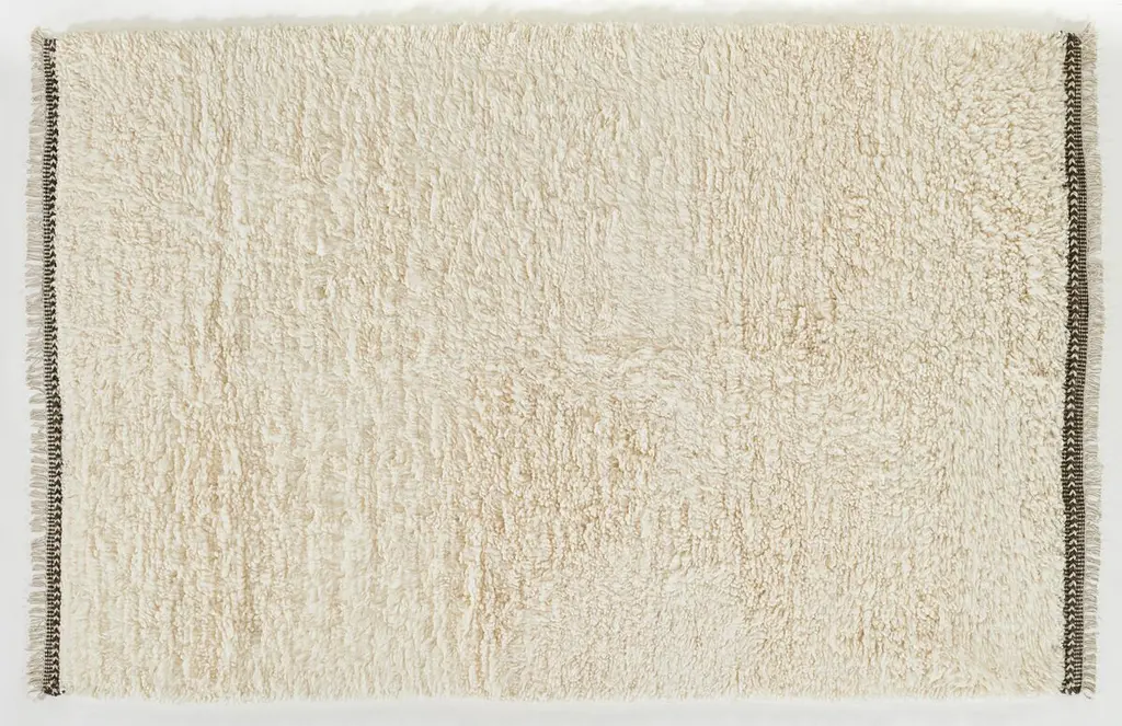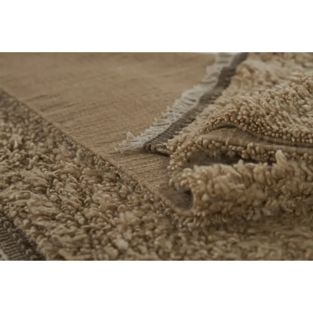 This beautiful handwoven thick shag rug is made from 100% New Zealand wool, using mill-spun yarns. Made in India, the yarn is locally dyed in the traditional vat dying method. Before the first wash, the back of each rug is mildly burnt with hand-held flame-emitting stoves. The rugs are given two rounds of rigorous washing, to provide the softest comfort underfoot. The finishing process includes hand shearing, with a unique and exaggerated one-sided tassel fringe. Each tassel is twisted and rolled by hand into bunches with a knot tied at each end, for a unique hand-crafted appeal.