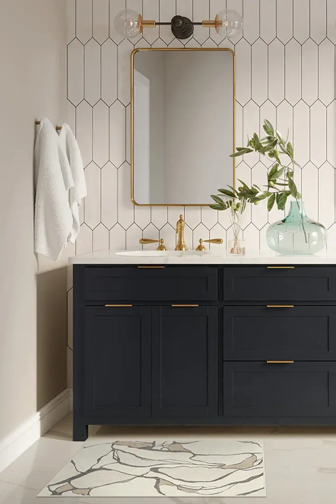 Earthy and understated. Reminiscent of stone, our Nina Takesh Aude Creme Rug features shades of taupe, dark grey, and off-white swirled together in a unique and elegant design. Water-resistant, stain-resistant, and machine-washable.