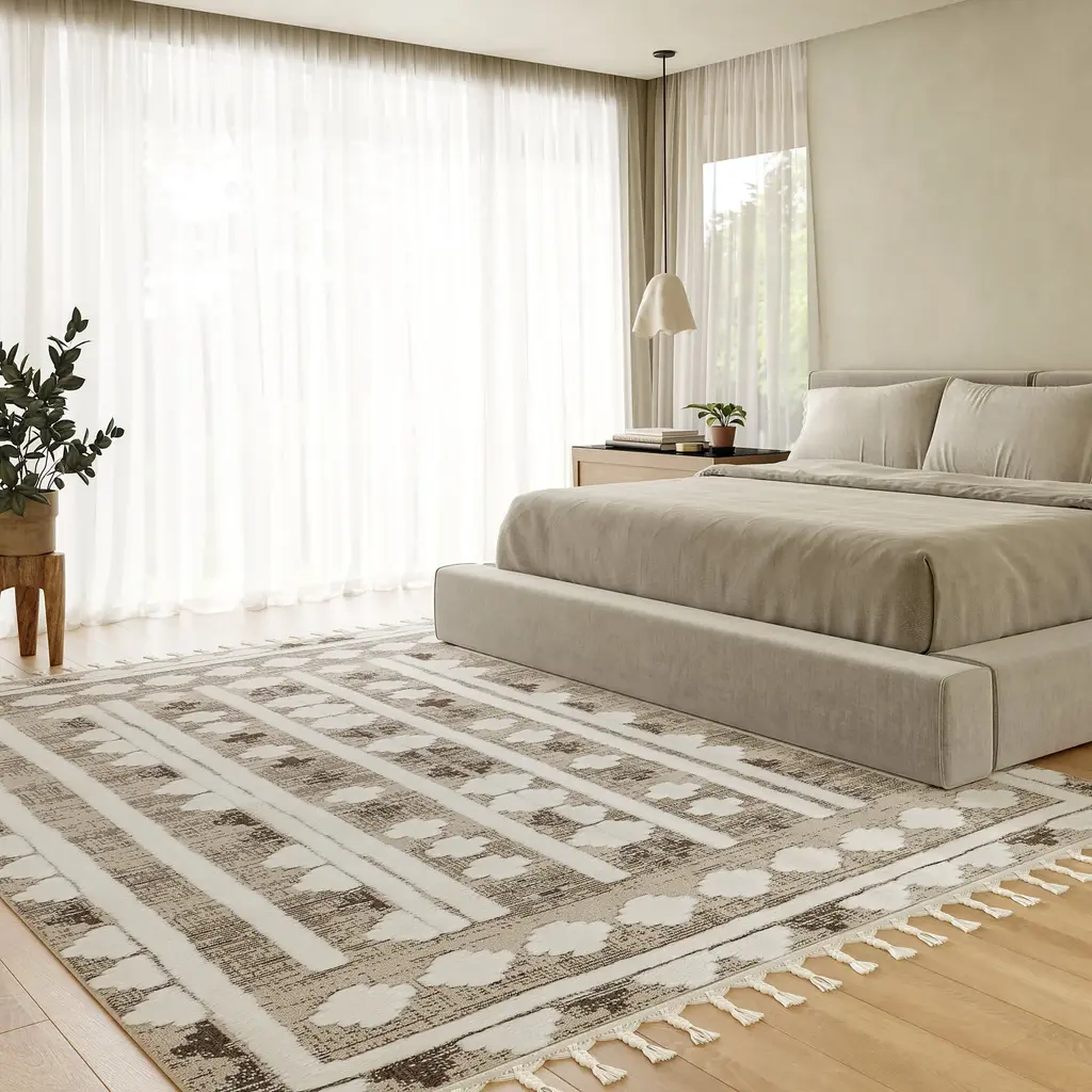 Audience Geometric Tasseled Rug | Beige - 6' 7" X 9'