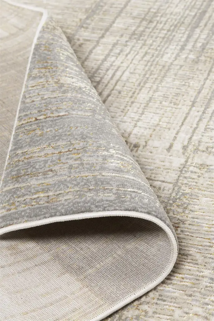 Collection: Aura Colors: Gray, Ivory Construction: Machine Made Material: Face: Polyester, Polypropylene / Warp: Jute Pile: Low Pile Pile Height: 0.39" Styles: Contemporary,Casual,Industrial Backing: Jute Made In: Turkey Thickness: 0.39" Price Range: $$$$$ (Affordable)