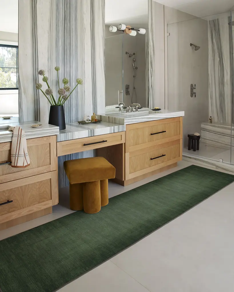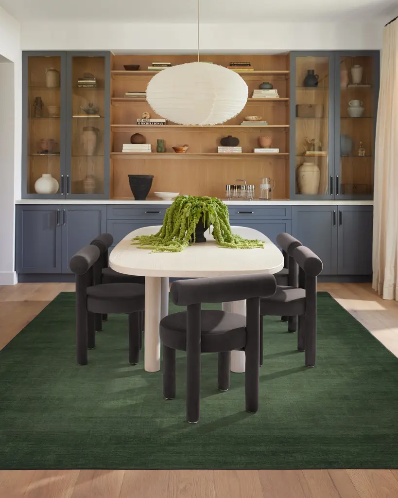 Bring home stylish tranquility with our Aura Ombre Solid Sage Rug. The soft ombre effect, created with brush strokes, provides a hand-painted look. A depth of shades within the sage green color palette, from a light ash sage green to a rich, dark forest green, gives this rug is a soothing and soft aesthetic. Water-resistant, stain-resistant, and machine-washable. Rug colors may vary slightly according to your device and the lighting in your space.
