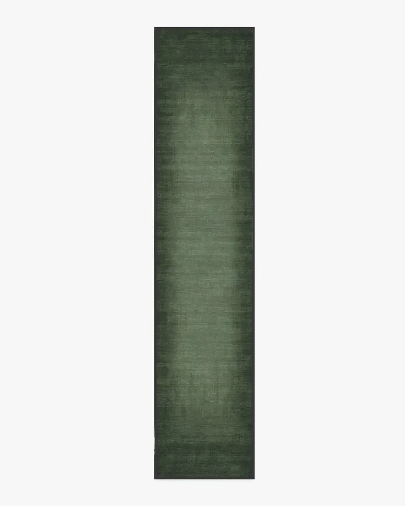 Bring home stylish tranquility with our Aura Ombre Solid Sage Rug. The soft ombre effect, created with brush strokes, provides a hand-painted look. A depth of shades within the sage green color palette, from a light ash sage green to a rich, dark forest green, gives this rug is a soothing and soft aesthetic. Water-resistant, stain-resistant, and machine-washable. Rug colors may vary slightly according to your device and the lighting in your space.