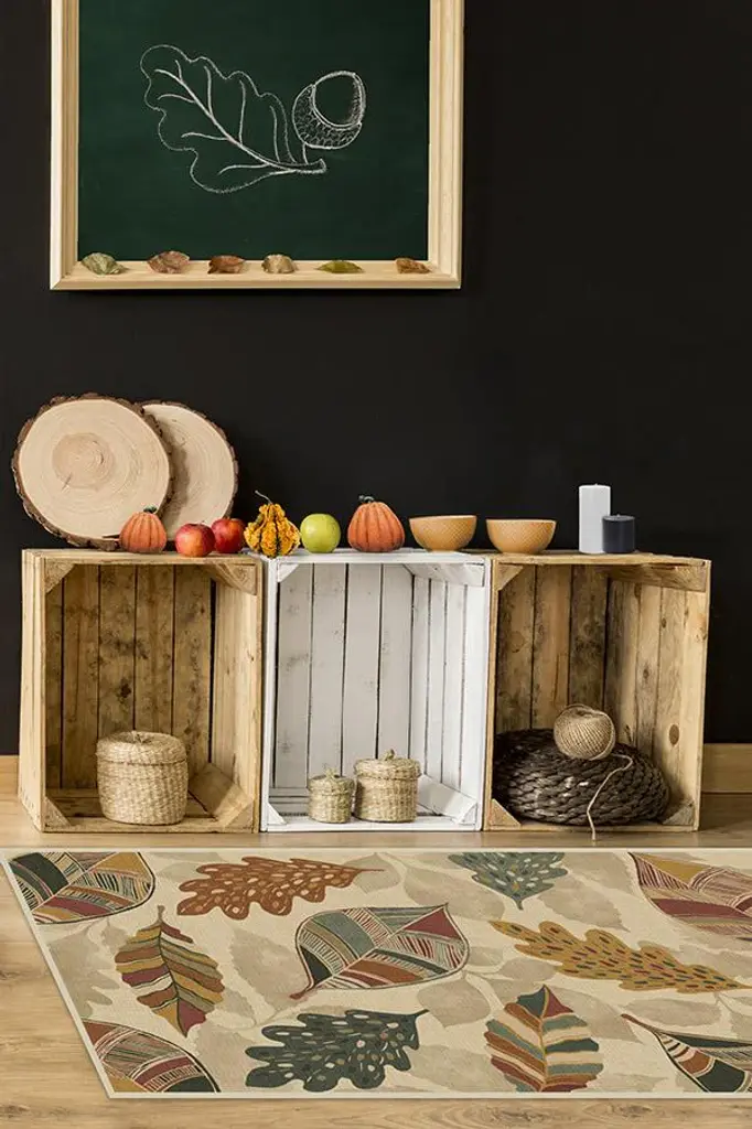 Designed with autumn-colored leaves against a light cream background, our Aurelia Amber Rug is ready to warm up any space. The varied patterns, coupled with a silhouetted background of falling leaves, bring dimension and layers to this seasonal rug with a festive fall vibe.