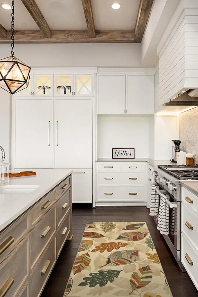 Designed with autumn-colored leaves against a light cream background, our Aurelia Amber Rug is ready to warm up any space. The varied patterns, coupled with a silhouetted background of falling leaves, bring dimension and layers to this seasonal rug with a festive fall vibe. Water-resistant, stain-resistant, and machine-washable.