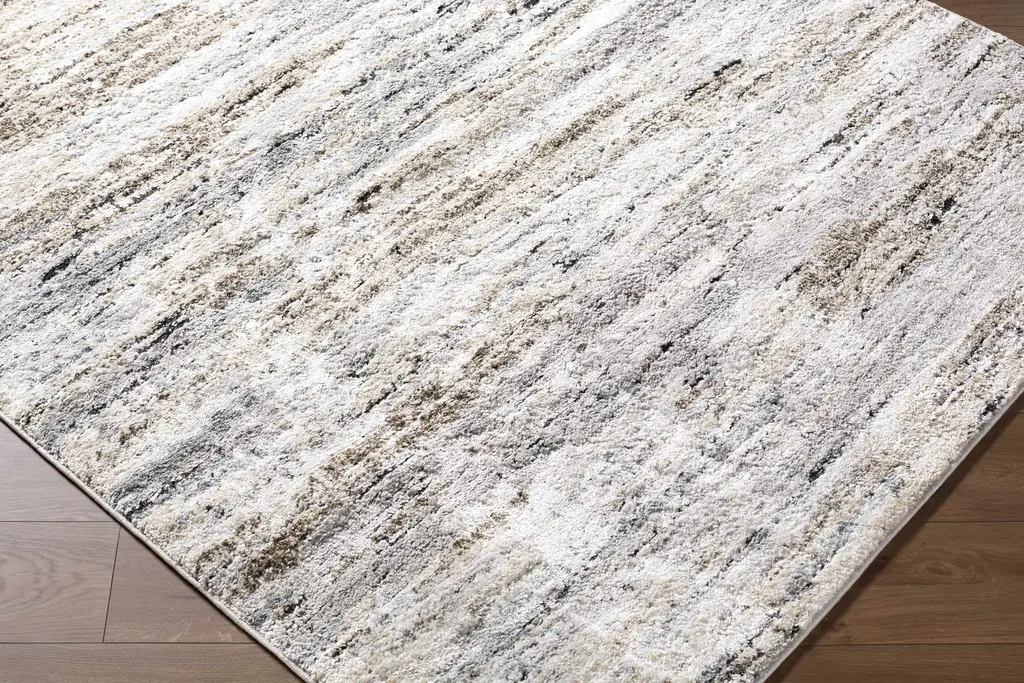 Collection: Aurera Colors: Ivory, Black, Peach, Light Gray, Medium Gray, Medium Brown Construction: Machine Woven Material: Face: 84% Polypropylene, 16% Polyester Pile: High Pile Pile Height: 0.51" Styles: Contemporary Made In: Turkey Thickness: 0.59" Price Range: $$$$$ (Most Affordable)