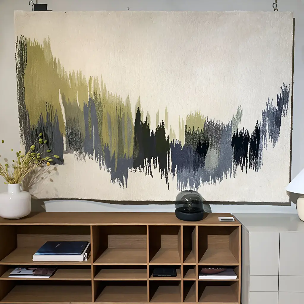 Singapore and Porto-based designer Gabriel Tan found inspiration in the Northern Lights when creating Aurora for Asplund. Hand-tufted in pure wool and lustrous natural Tencel by skilled artisans, the dynamic trailing pattern features a mix of warm tones that approximate the skyward phenomenon—and the rug looks just as good on the floor as on the wall