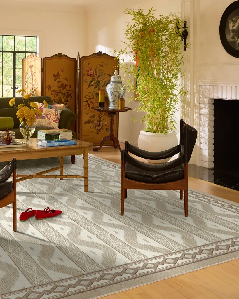 A refined take on Mrs. Alice’s iconic Ikat patterns featuring a beautiful range of warm beige tones. The monochromatic palette, with its seamless transition from light to dark, is complemented by a warm cream background, creating a soft yet sophisticated look that suits a variety of spaces and styles. Water-resistant, stain-resistant, and machine-washable. Rug colors may vary slightly according to your device and the lighting in your space.