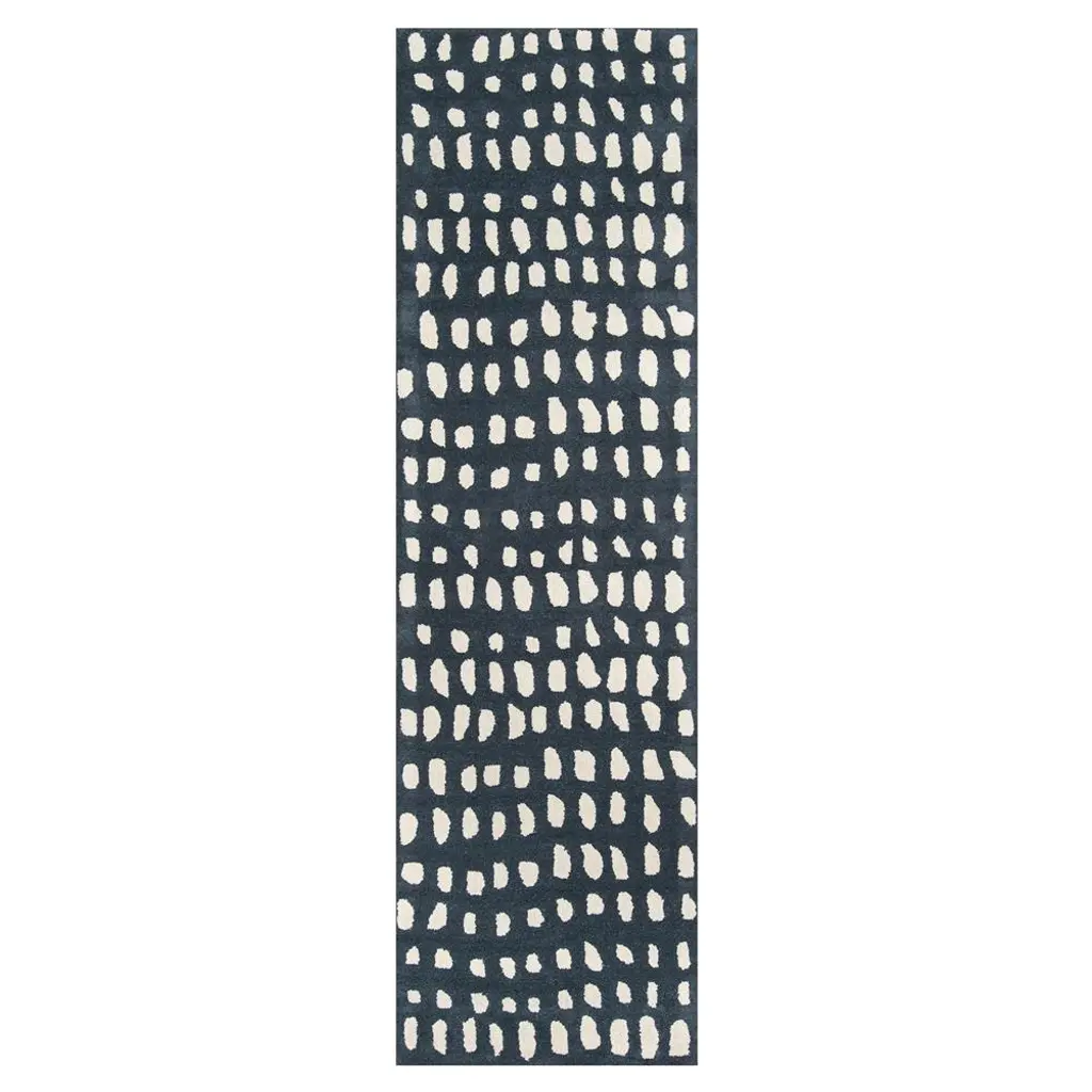 Ava Modern Classic Grey White Wool Boho Dot Patterned Rug - 2'3"x8'