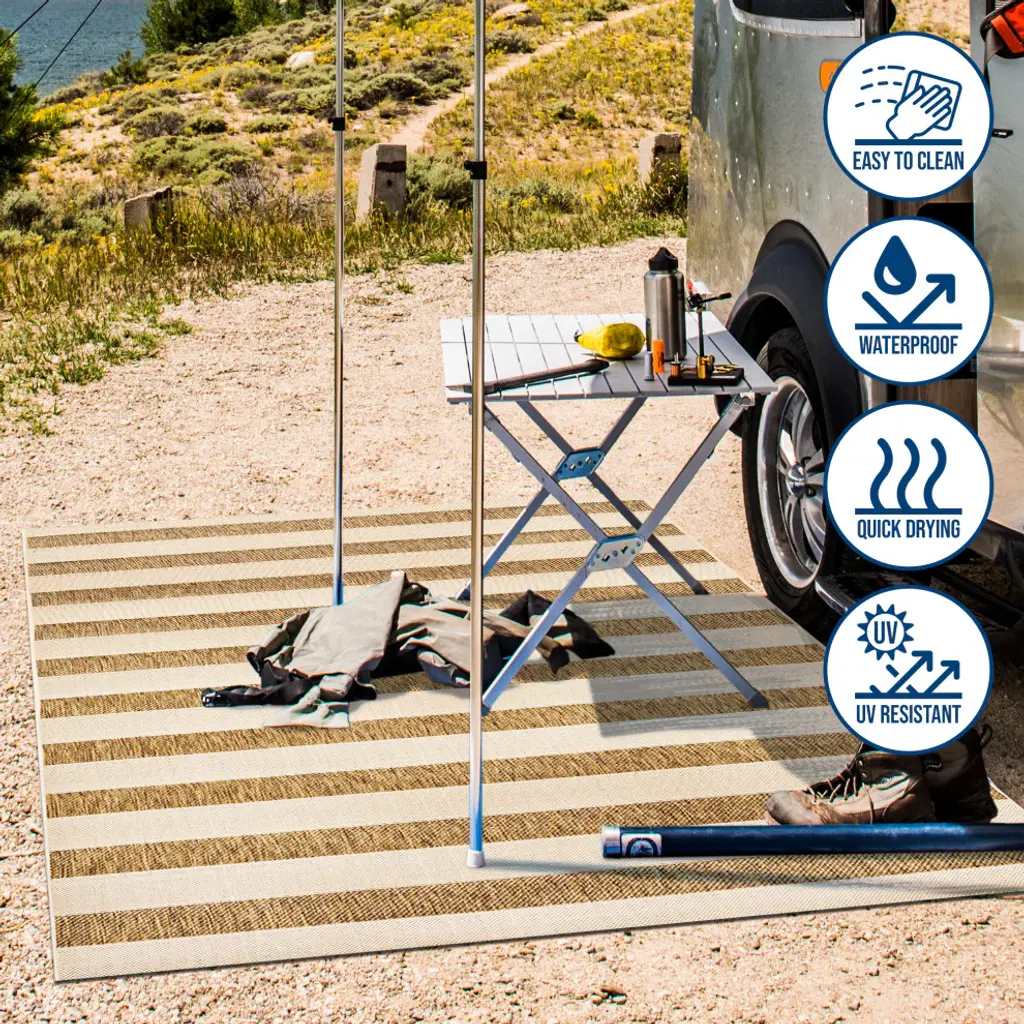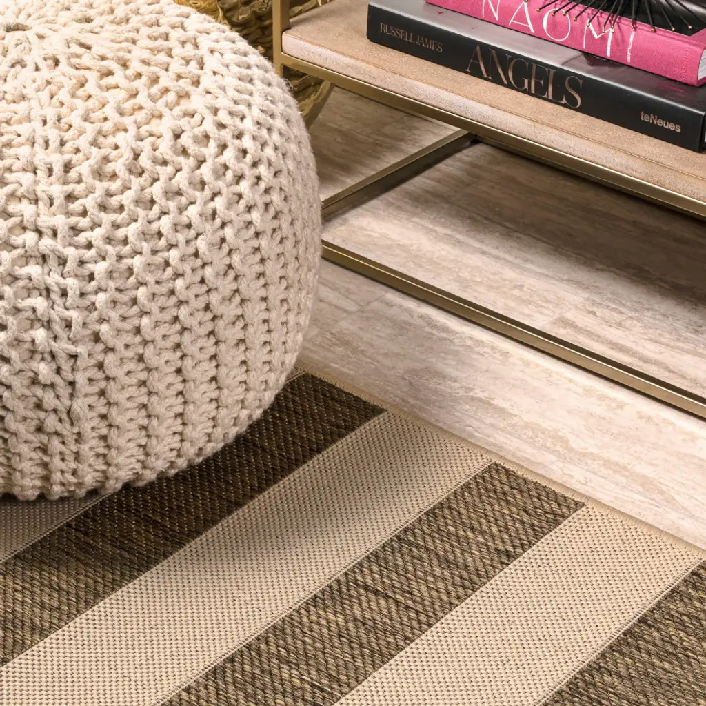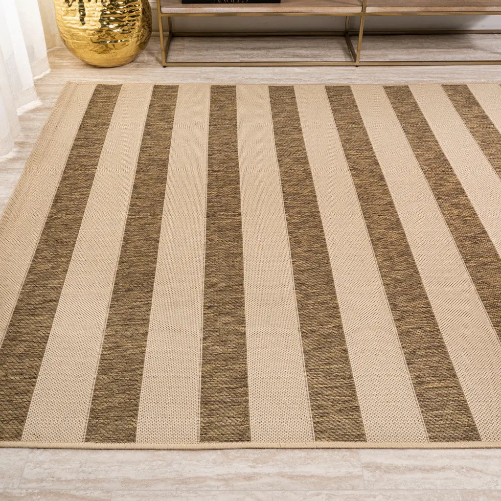 A simple wide stripe is woven with a mingled effect to create a classic neutral rug. This versatile rug is perfect for your tropical cottage porch or modern outdoor patio. The traditional stripe is a family-friendly solution for a casual living room, modern bedroom, kitchen hallway, entry or kids bedroom. The pet-friendly and kid-proof flatweave design makes it easy to clean, and perfect for the beach house.Features:• Power loomed with a flat pile that''s soft and durable• Woven stripes in shades of brown and beige• Made from easy-care polypropylene - just sweep, vacuum or hose down with mild soap and water• 100% Polypropylene• No backing, use of rug pad is recommended (sold separately)• Power Loomed in Turkey• Actual Dimension: 3 ft. x 5 ft.• Color: Beige/Brown• Thickness measures: 0.19 in.• Available in multiple sizes and/or colorsRug Care:• Vacuum regularly and spot clean as needed; avoid direct and continuous exposure to sunlight; use brushless vacuum; remove spills immediately; if liquid, blot with clean, undyed cloth by pressing firmly around the spill to absorb as much as possible; for hard to remove stains, professional rug cleaning is recommended; store in a dry, well ventilated area and rotate for consistent wear• Packing and shipping may cause temporary creases in rugs, which will flatten out after a week on the floor; to expedite the process, try back-rolling your rug before laying it down, and then allow ample time for the remaining creases to relax• Please Note: Due to differences in monitors, some rug colors may vary slightly. Lengths and widths may vary from the published dimensions. Patterns may vary slightly according to shape and size selected.About us:Style your floors with JONATHAN Y. By combining fine craftsmanship and design, this New York creative studio is bringing fashion to your floors. The collection mixes sustainable organic materials, vibrant colors and trend worthy styles to create JONATHAN Y''s distinctive catalog of rugs.