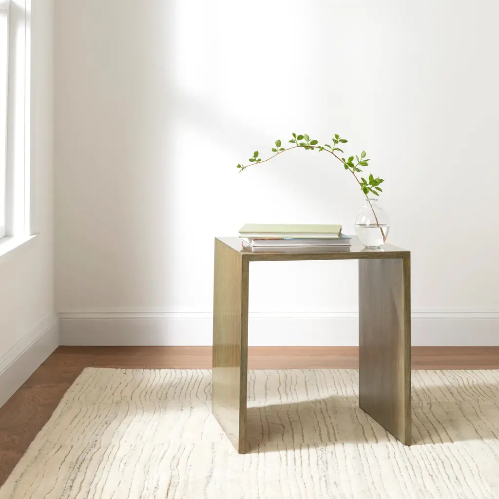 Inspired by substrate layers of sandstone sediments that chronicle the millennia, this luxurious, irregularly striped wool rug will stand the test of time. The subtle degradations of a natural undyed fleece pile enhance the finely observed irregular striping in a softly mineral palette. The subtle beauty of the higher sheared tufts emphasizes the contrast of the densely looped stripes. A signature motif of Marie Flanigan, an award-winning interior designer. This rug is a part of our design collaboration with Marie to produce a lifestyle collection that reflects her signature style of timeless elegance and innovative simplicity.