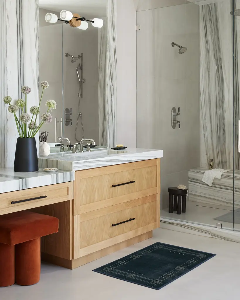 Discover 2025���s interior trends with our Architectural Digest Avery Midnight Blue Rug. This art deco-inspired design features a symmetrical border with intricate Art Deco detailing, beautifully balanced with a minimalist touch. The light cream linework subtly contrasts against a deep navy blue background, giving any space an updated 1920s aesthetic. Water-resistant, stain-resistant, and machine-washable. Rug colors may vary slightly according to your device and the lighting in your space.