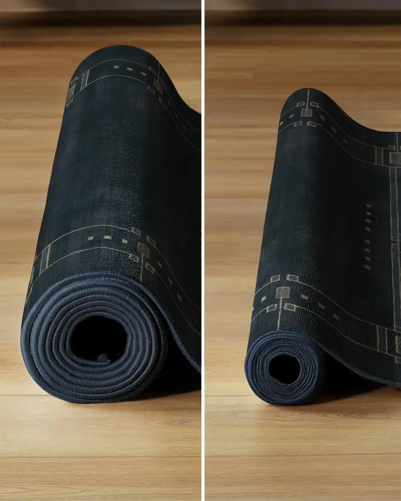 Discover 2025���s interior trends with our Architectural Digest Avery Midnight Blue Rug. This art deco-inspired design features a symmetrical border with intricate Art Deco detailing, beautifully balanced with a minimalist touch. The light cream linework subtly contrasts against a deep navy blue background, giving any space an updated 1920s aesthetic. Water-resistant, stain-resistant, and machine-washable. Rug colors may vary slightly according to your device and the lighting in your space.