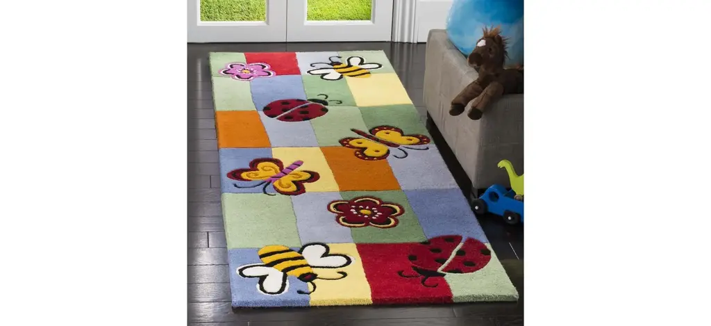 The Avicia Kid's Rug features a colorful design with a variation of insects and flowers for a fun addition to your kid's room. These rugs are made with pure soft wool and hand-tufted to a cotton backing for added cushion.