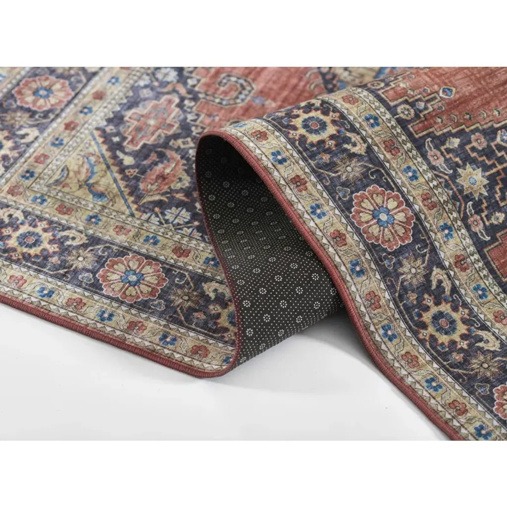 Welcome home to this Oriental-inspired area rug that adds a touch of elegance to your indoor space. Expertly machine-woven from polyester, it features a soft, non-slip felt backing for added safety and floor heating compatibility. This rug is not only a visual treat but also a practical choice for your home. With its non-reversible design and easy-to-clean surface, it's perfect for high-traffic areas like the living room or entryway. So, go ahead and give your floors a fresh update with this delightful area rug.