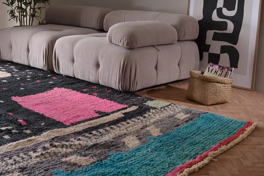 One-of-a-kind new rug, hand-knotted near the small city of Boujad in the Chaouia-Ouardigha region of Morocco