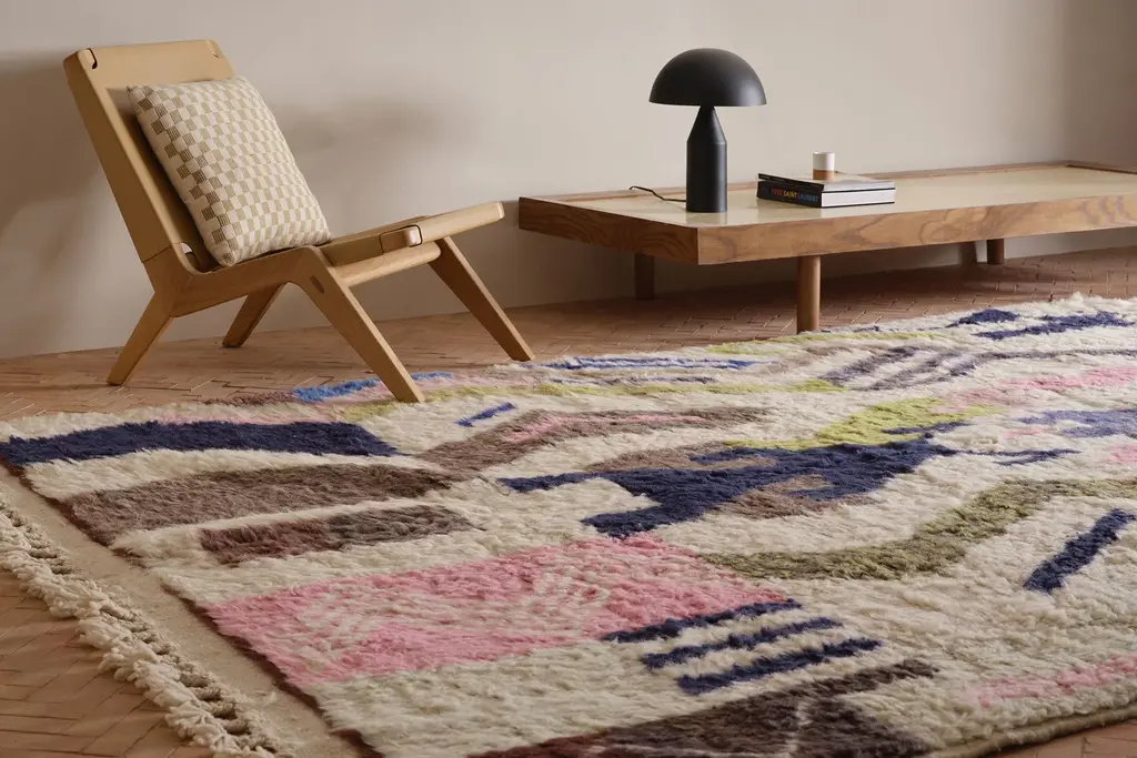 Our Moroccan pieces are each one-of-a-kind. Much of our collection was woven between 30 and 100 years ago, and curated by us. Other rugs in our collection are fresh off the loom and made with traditional techniques. Moroccan rugs don’t come with a key. As with any painting or poem, their motifs have many subjective interpretations. Originally made for personal use, these rugs took months to weave, documenting a shifting tide of events and emotions in the weaver’s life.