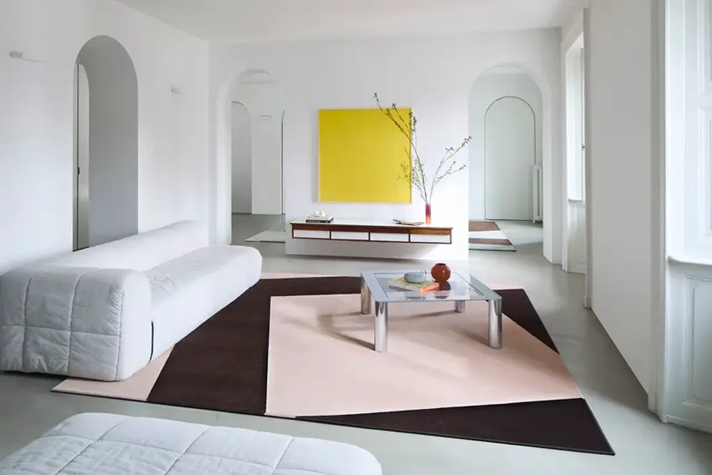 Axis is an hand mande rug.Geometric patterns give the Axis rug a sense of movement. Two vibrant and contrasting colours intertwine in a dynamic interplay, amplifying the visual effect and making each rug a unique and unrepeatable work of art.Customisable in size and colour.