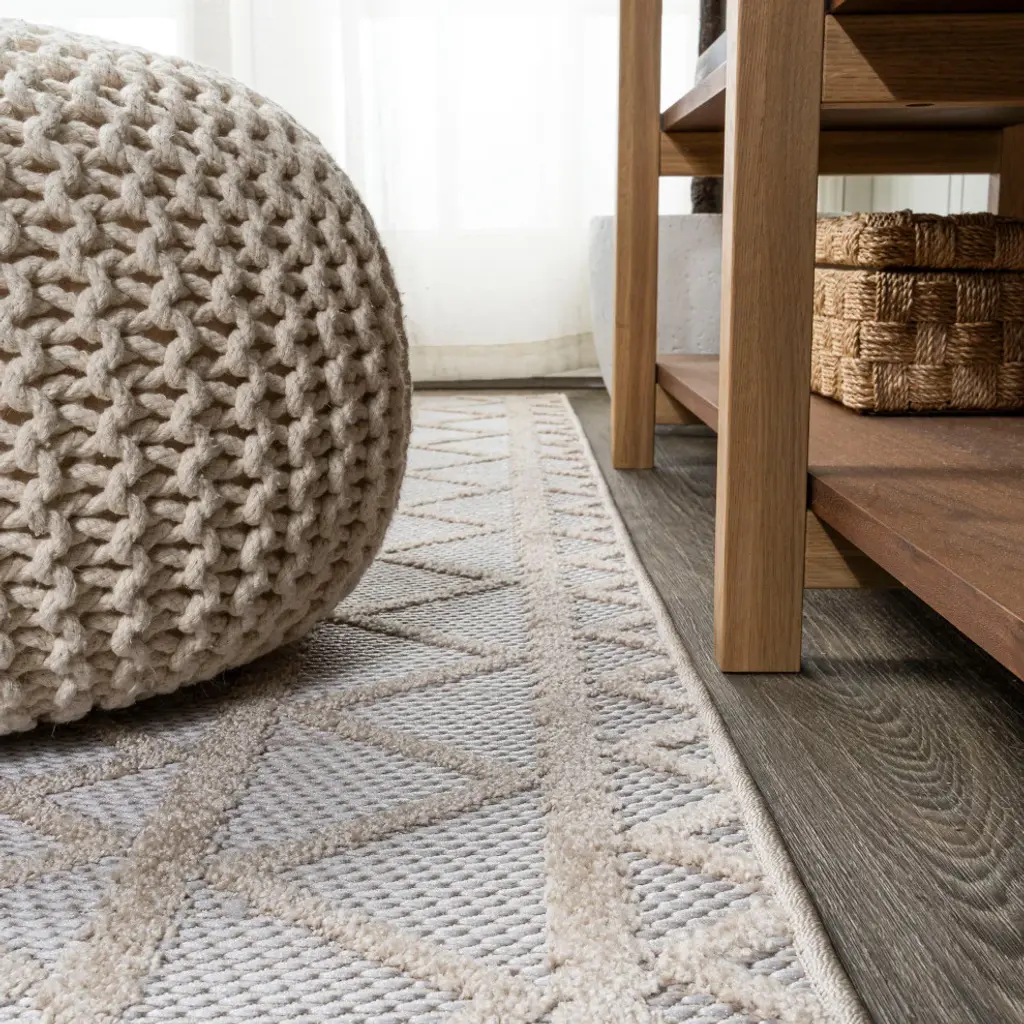 Aylan Pile Knotted Trellis Geo Indoor/outdoor Area Rug, Beige, 2'x8'