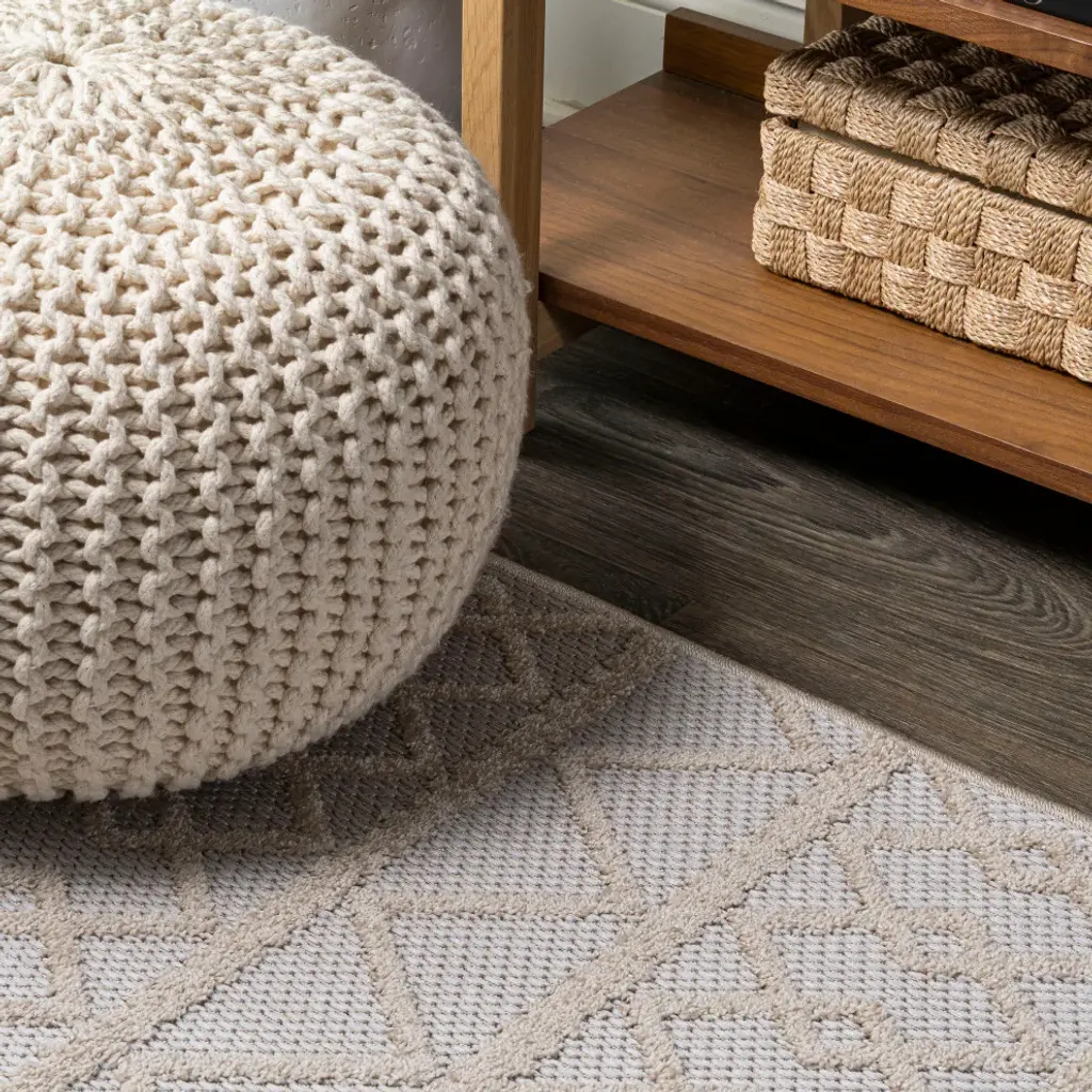 Aylan Pile Knotted Trellis Geo Indoor/outdoor Area Rug, Beige, 4'x6'