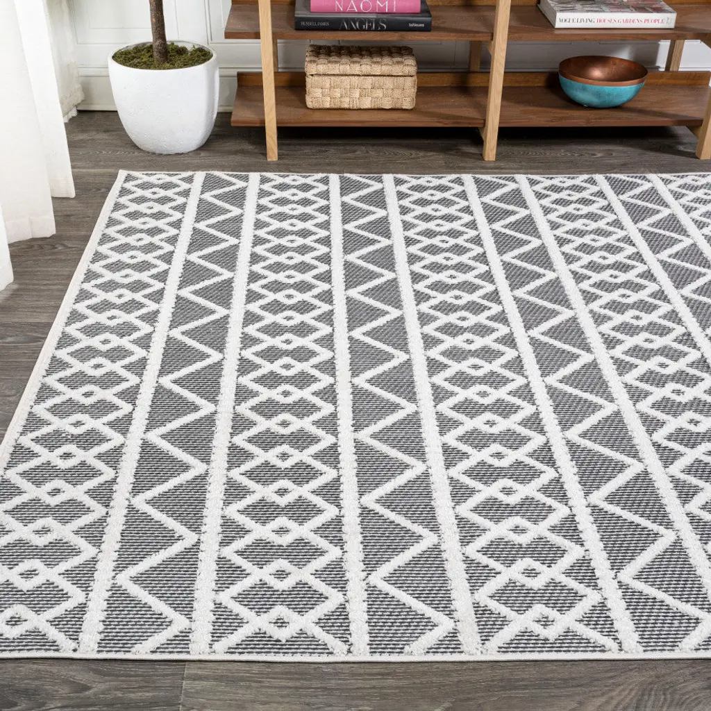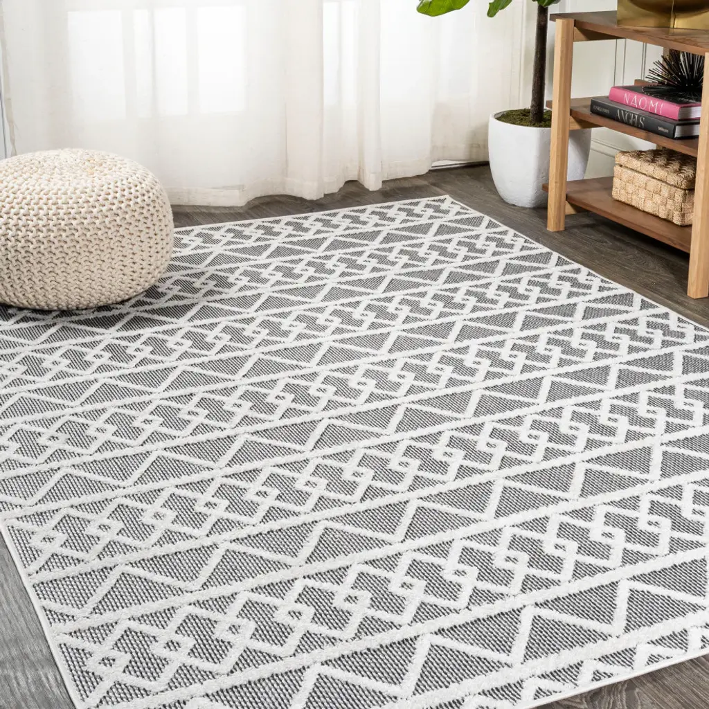 Aylan Pile Knotted Trellis Geo Indoor/outdoor Area Rug, Black/ivory, 3'x5'