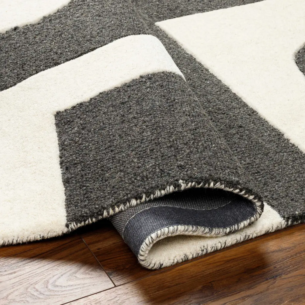 Collection: Ayoka Colors: Taupe, Beige, Medium Gray, Gray Construction: Hand Tufted Material: 100% Wool Pile: Medium Pile Pile Height: 0.47" Styles: Contemporary Backing: Canvas Made In: India Thickness: 0.63" Price Range: $$$$$ (Affordable)