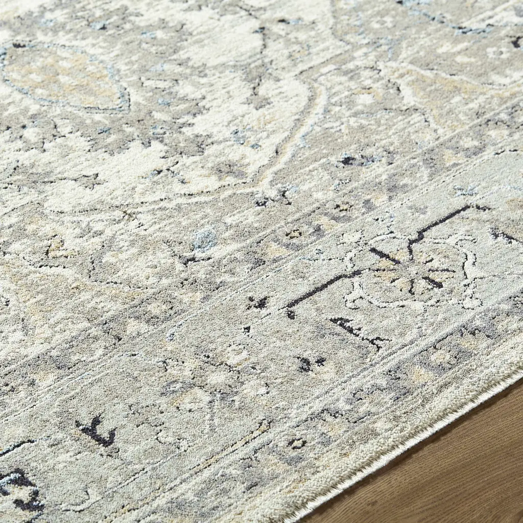 Collection: Ayzize Colors: Ivory, Slate Gray, Taupe, Charcoal, Sky Blue Construction: Machine Woven Material: 100% Polyester Pile: Medium Pile Pile Height: 0.31" Styles: Traditional Made In: Turkey Thickness: 0.39" Price Range: $$$$$ (Affordable)