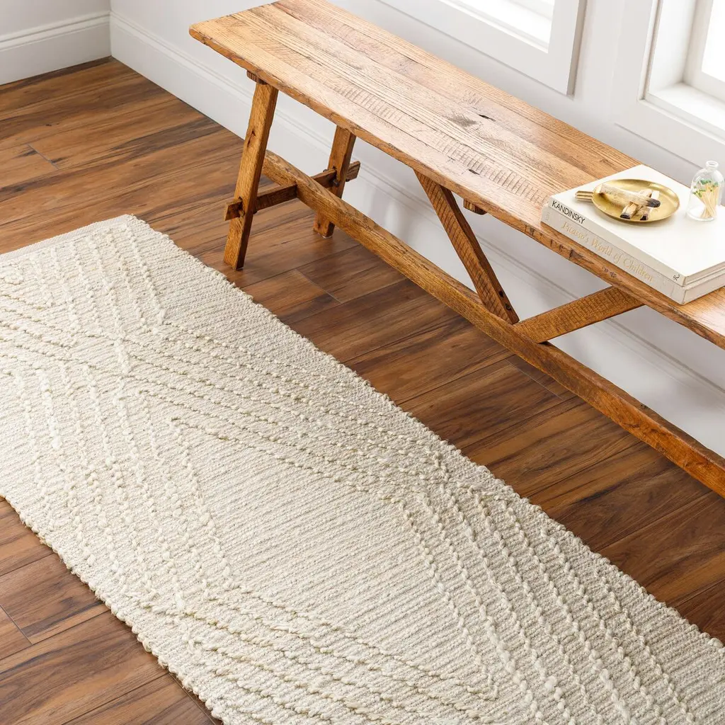 Handwoven by Indian artisans of soft yet durable jute, this rug has a textural diamond motif that elevates its neutral hue and makes it a welcome addition to just about any room. A rug pad is recommended to help prevent slipping and extend the life of the rug.